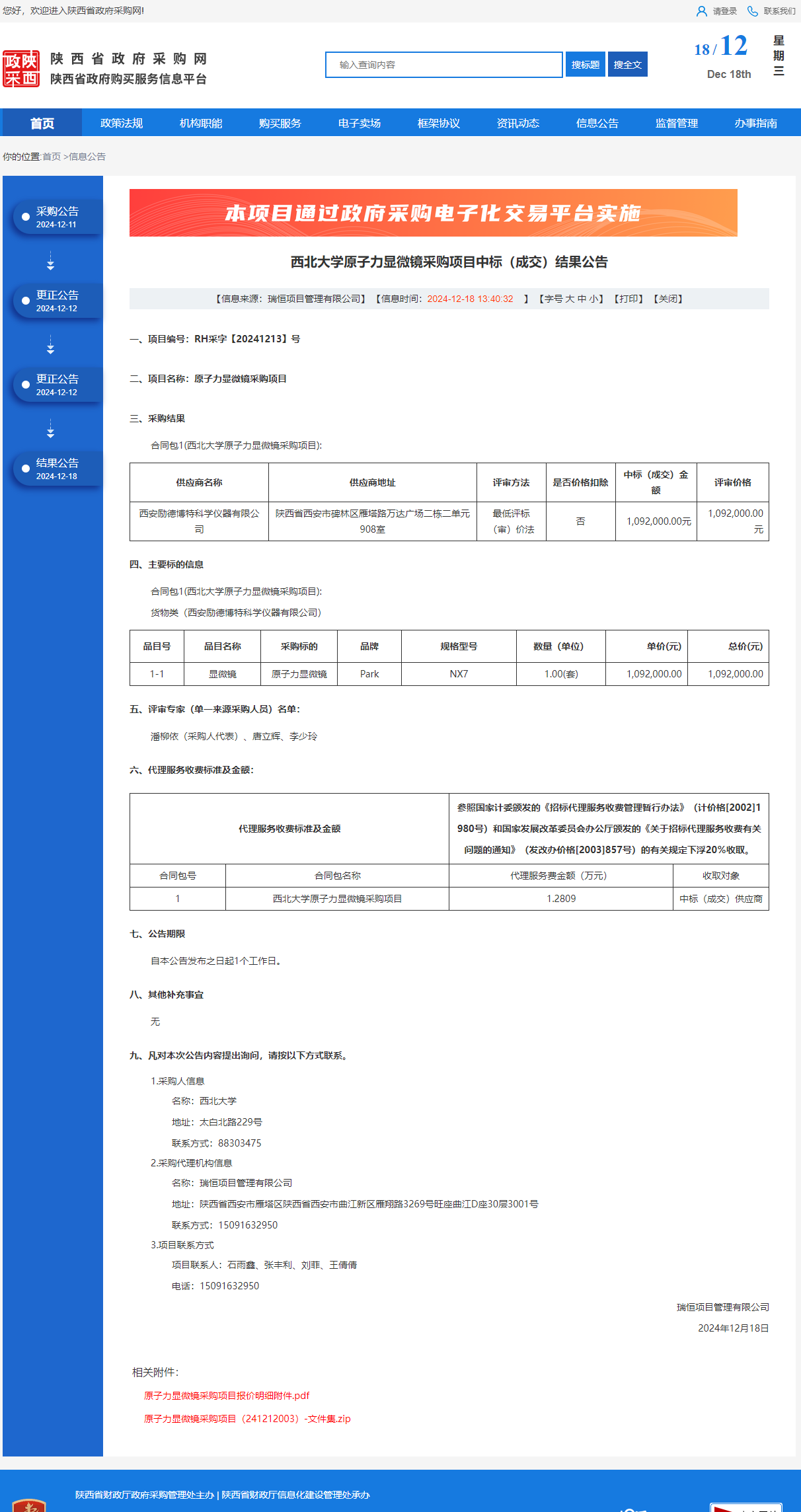 星空app官网原子力显微镜采购项目中标(成交)结果公告 作者:采购与招标办公室 编辑: 时间:2024-12-18 原公告链接:https://www.ccgp-shaanxi.gov.cn/freecms/site/shaanxi/ggxx/info/2024/8a69c95d921859f00193d84373ad1532.html