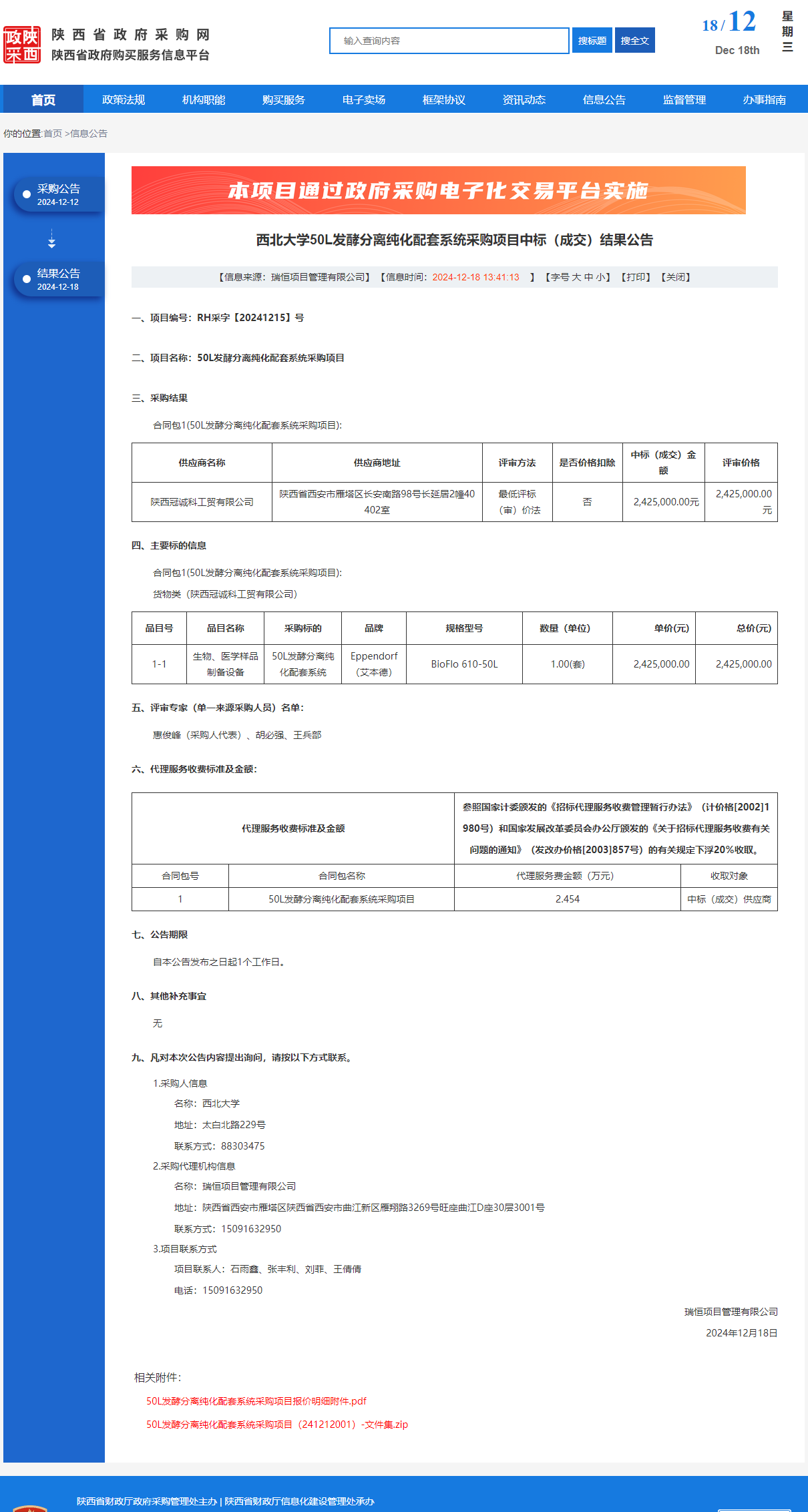 星空app官网50L发酵分离纯化配套系统采购项目中标(成交)结果公告 作者:采购与招标办公室 编辑: 时间:2024-12-18 原公告链接:https://www.ccgp-shaanxi.gov.cn/freecms/site/shaanxi/ggxx/info/2024/8a69c5a59218576d0193d83e10003654.html