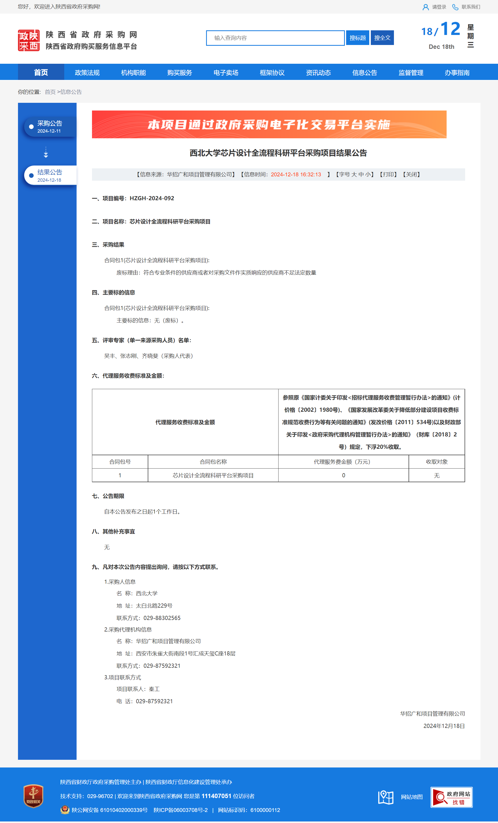 星空app官网芯片设计全流程科研平台采购项目结果公告