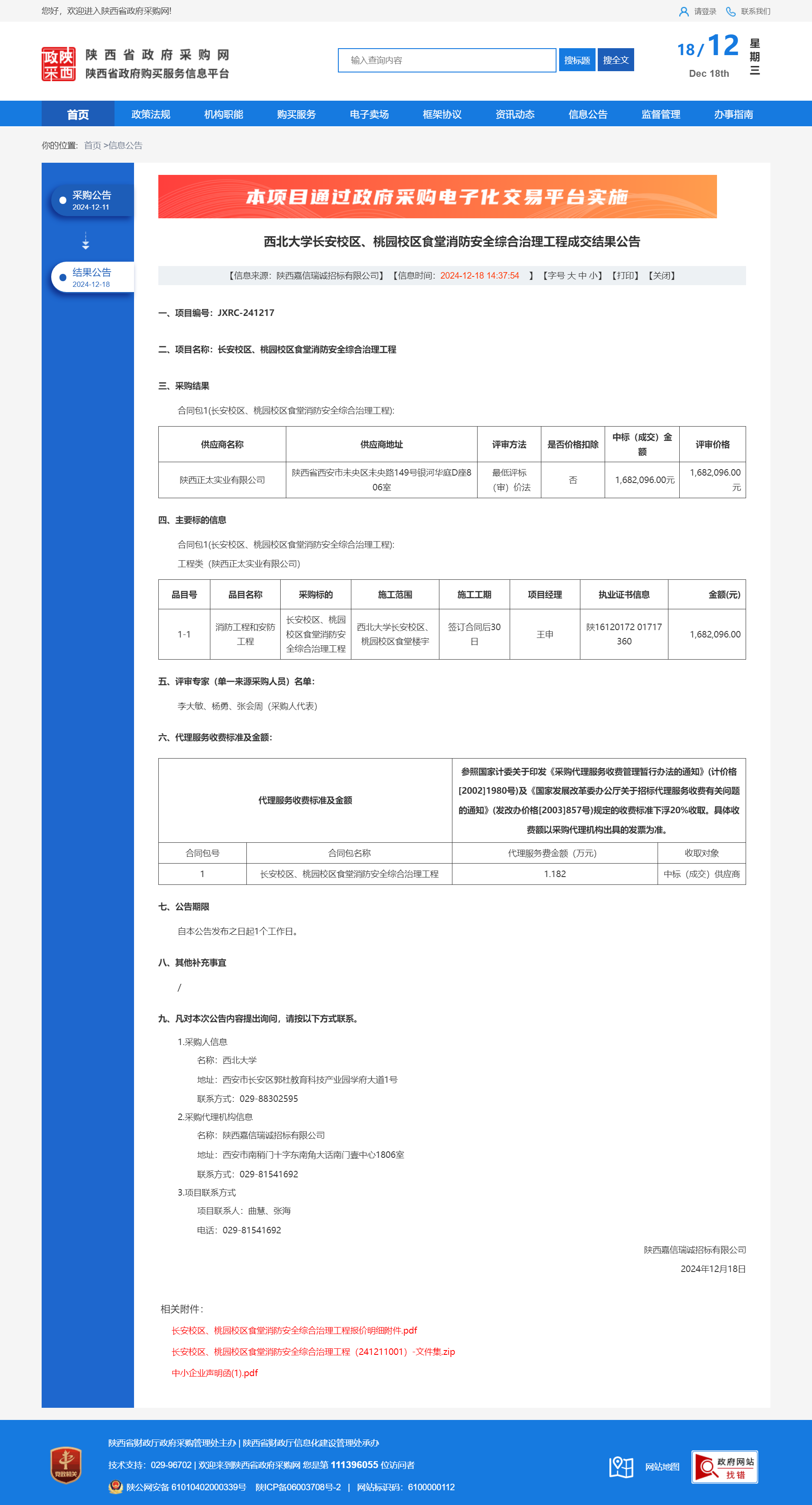 星空app官网长安校区、桃园校区食堂消防安全综合治理工程成交结果公告