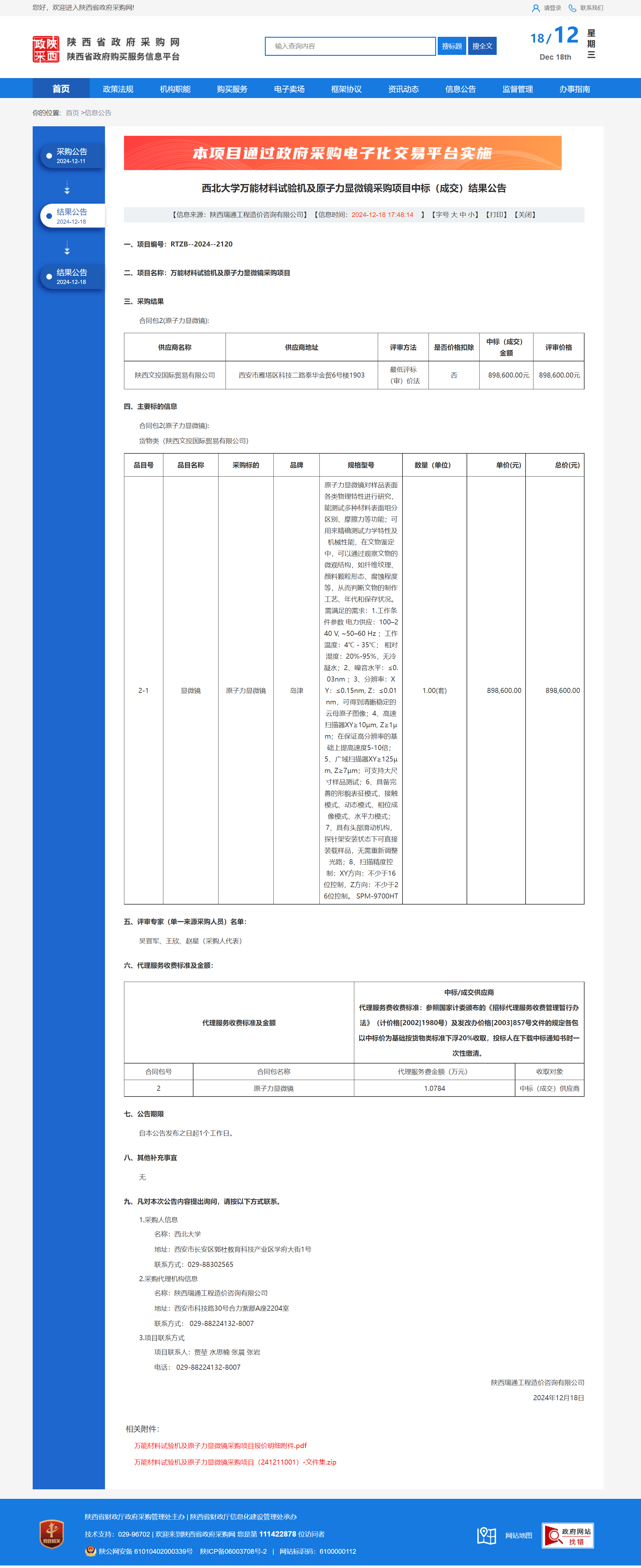星空app官网万能材料试验机及原子力显微镜采购项目中标(成交)结果公告
