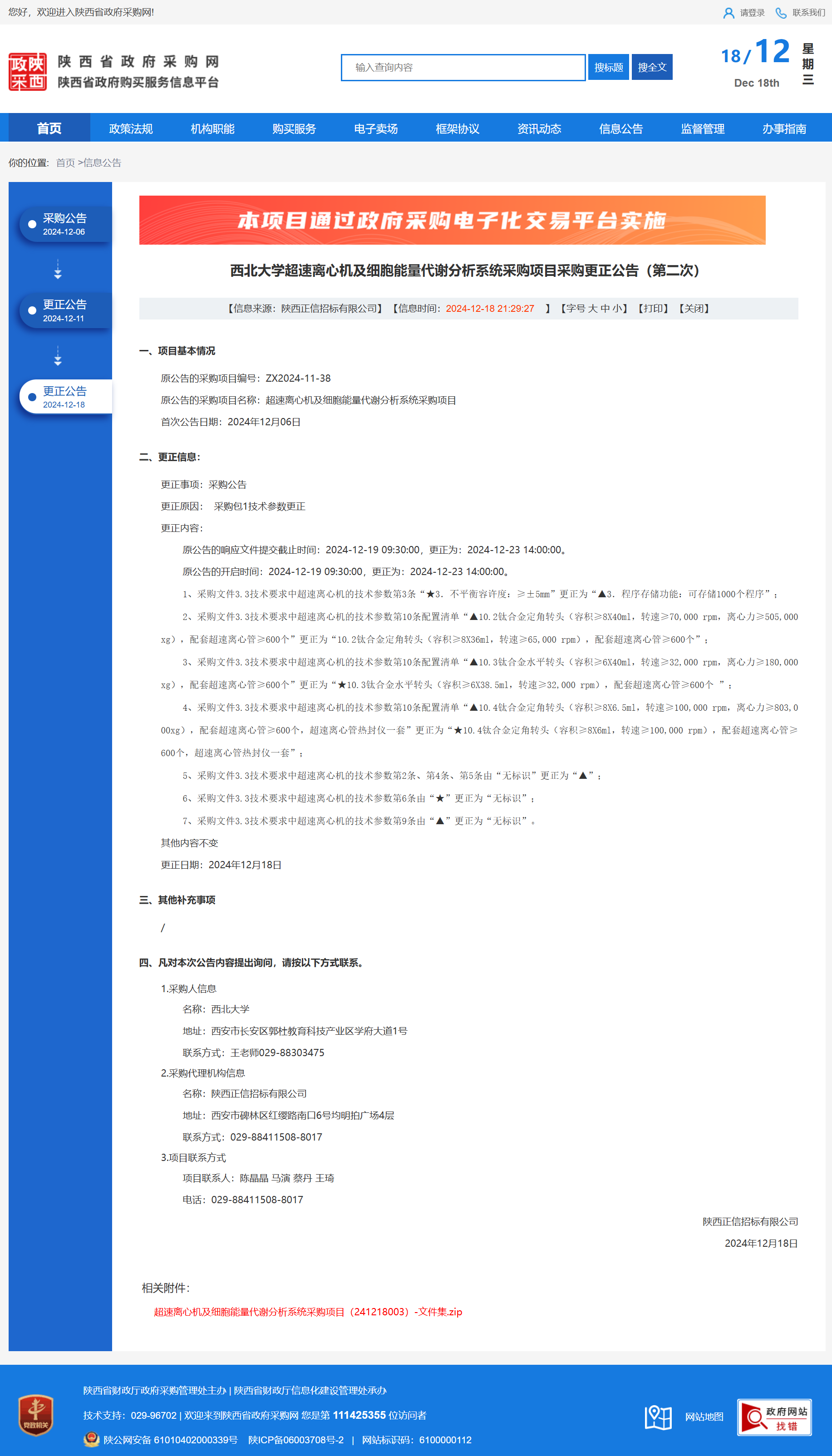 星空app官网超速离心机及细胞能量代谢分析系统采购项目采购更正公告(第二次) 作者:采购与招标办公室 编辑: 时间:2024-12-18 原公告链接:https://www.ccgp-shaanxi.gov.cn/freecms/site/shaanxi/ggxx/info/2024/8a69c5a59218576d01939bb6350f3f92.html?noticeType=001016¬iceId=5be8bcca-b3ca-11ef-8063-08c0eb20c666