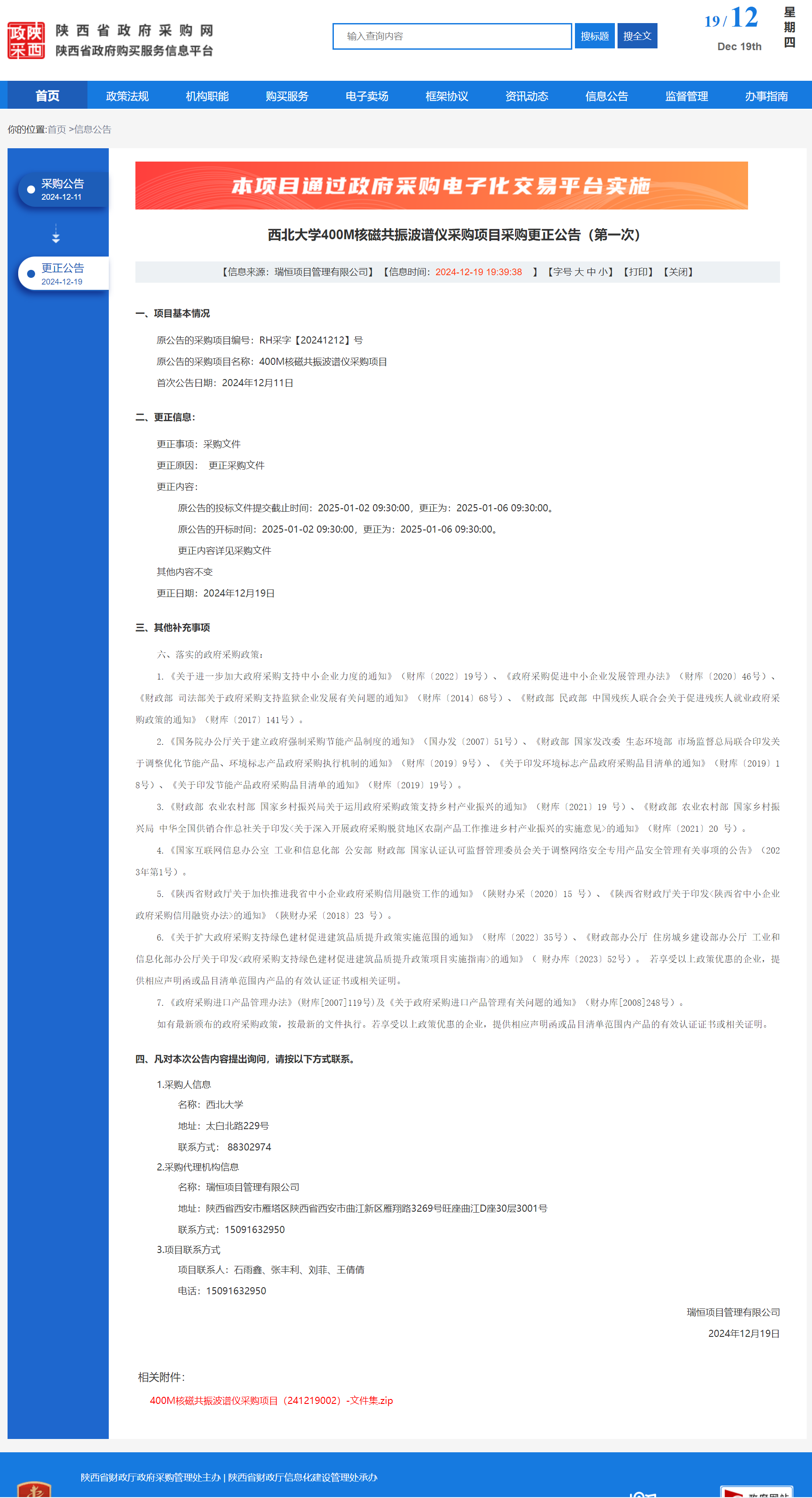 星空app官网400M核磁共振波谱仪采购项目采购更正公告(第一次) 作者:采购与招标办公室 编辑: 时间:2024-12-19 原公告链接:https://www.ccgp-shaanxi.gov.cn/freecms/site/shaanxi/ggxx/info/2024/8a69c44e9218572b0193dea841d35edb.html?noticeType=001031¬iceId=90038807-bdff-11ef-8063-08c0eb20c666