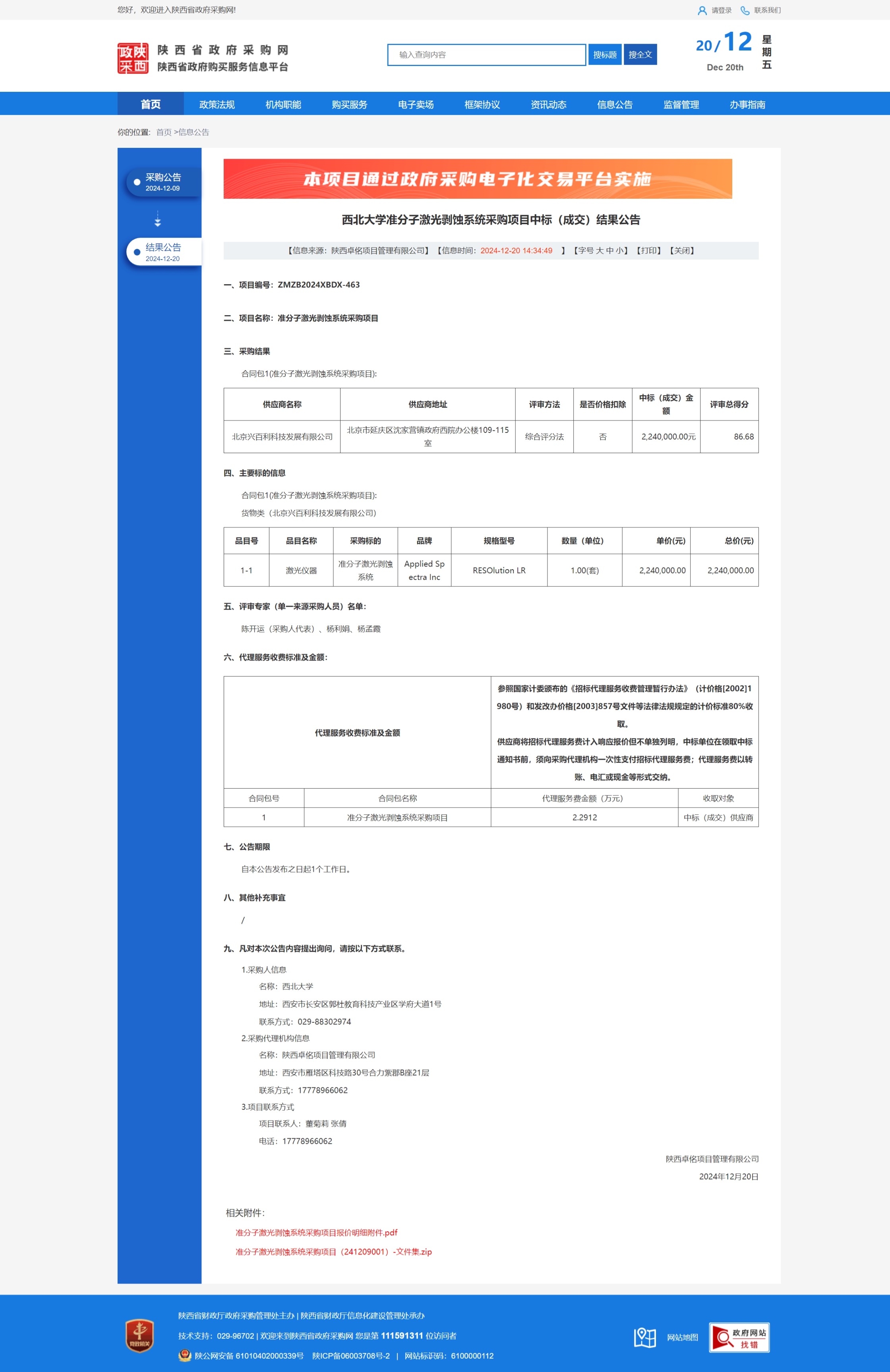 星空app官网准分子激光剥蚀系统采购项目中标(成交)结果公告 作者: 编辑:薛利娟 时间:2024-12-20 原 原公告链接:https://www.ccgp-shaanxi.gov.cn/freecms/site/shaanxi/ggxx/info/2024/8a69c44e9218572b0193e29f87ef1ad0.html?noticeType=001026¬iceId=25ebb152-be9e-11ef-8063-08c0eb20c666
