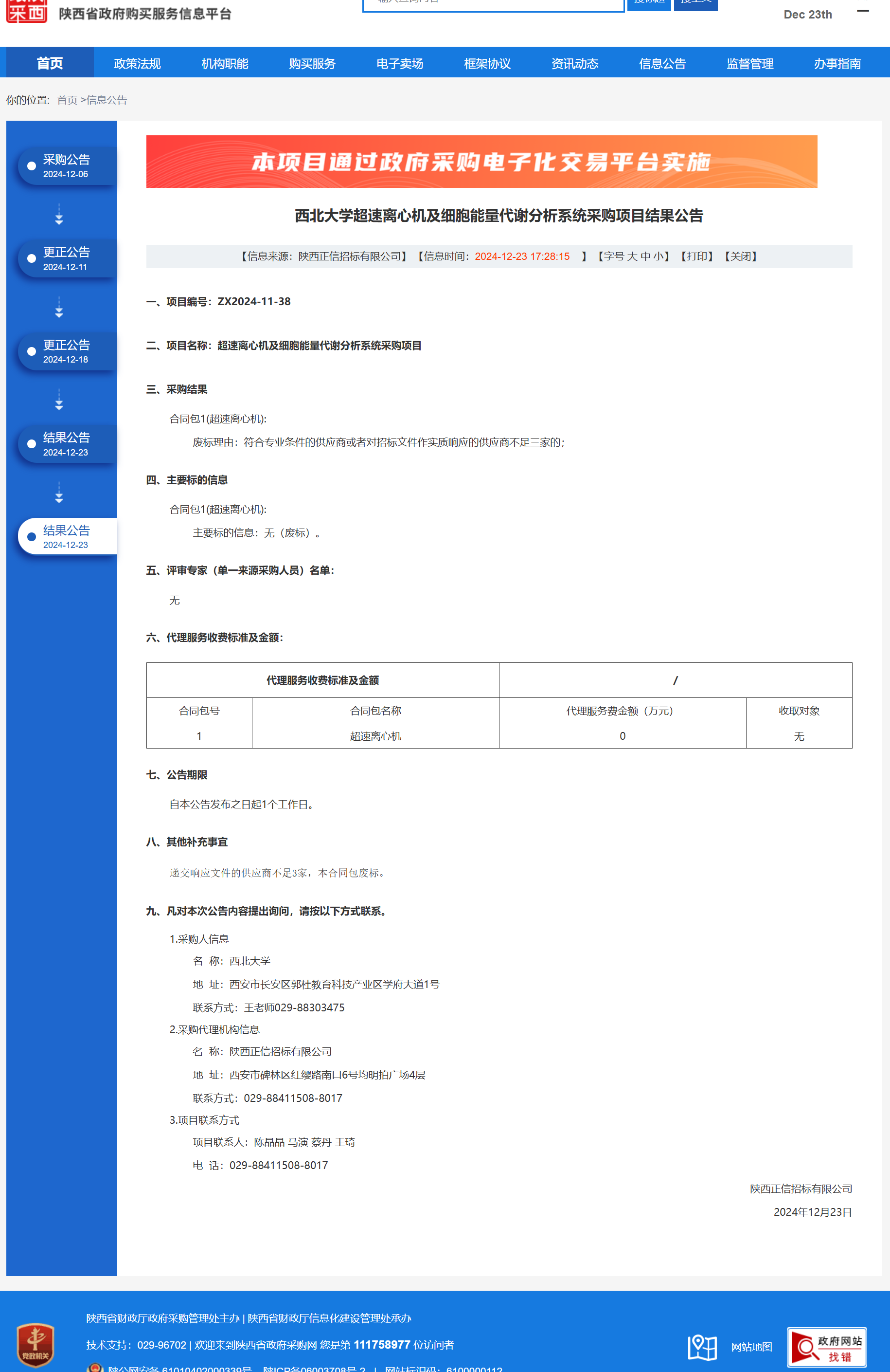 星空app官网超速离心机及细胞能量代谢分析系统采购项目结果公告 作者:采购与招标办公室 编辑: 时间:2024-12-23 原公告链接:https://www.ccgp-shaanxi.gov.cn/freecms/site/shaanxi/ggxx/info/2024/8a69c5a59218576d0193f2b7cd521246.html?noticeType=001006¬iceId=e0b5db84-c111-11ef-8063-08c0eb20c666