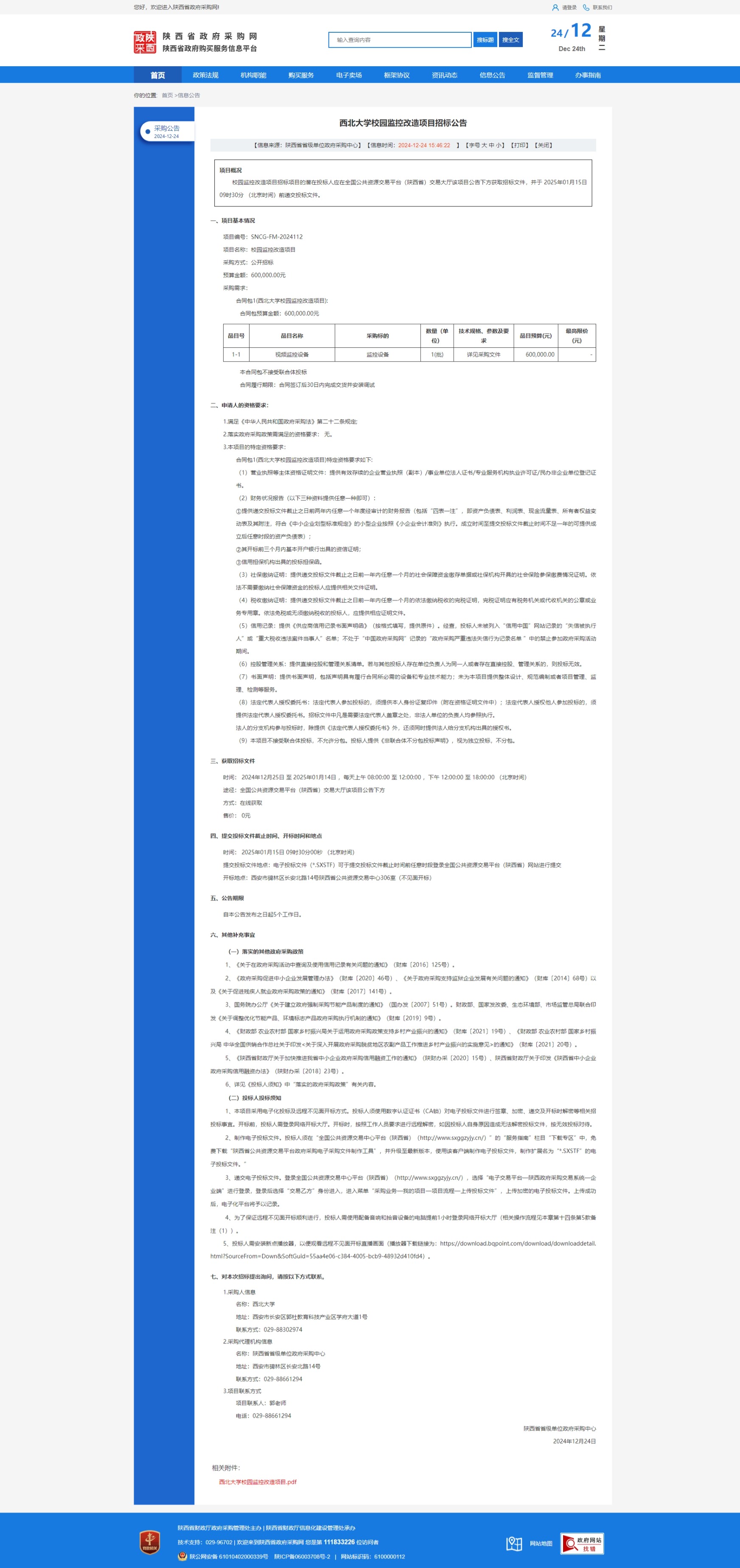 星空app官网校园监控改造项目招标公告 作者: 编辑:薛利娟 时间:2024-12-24 原公告链接:https://www.ccgp-shaanxi.gov.cn/freecms/site/shaanxi/ggxx/info/2024/8a69c95d921859f00193f765d16522d0.html?noticeType=001011¬iceId=d06e0e57-c1cc-11ef-8063-08c0eb20c666