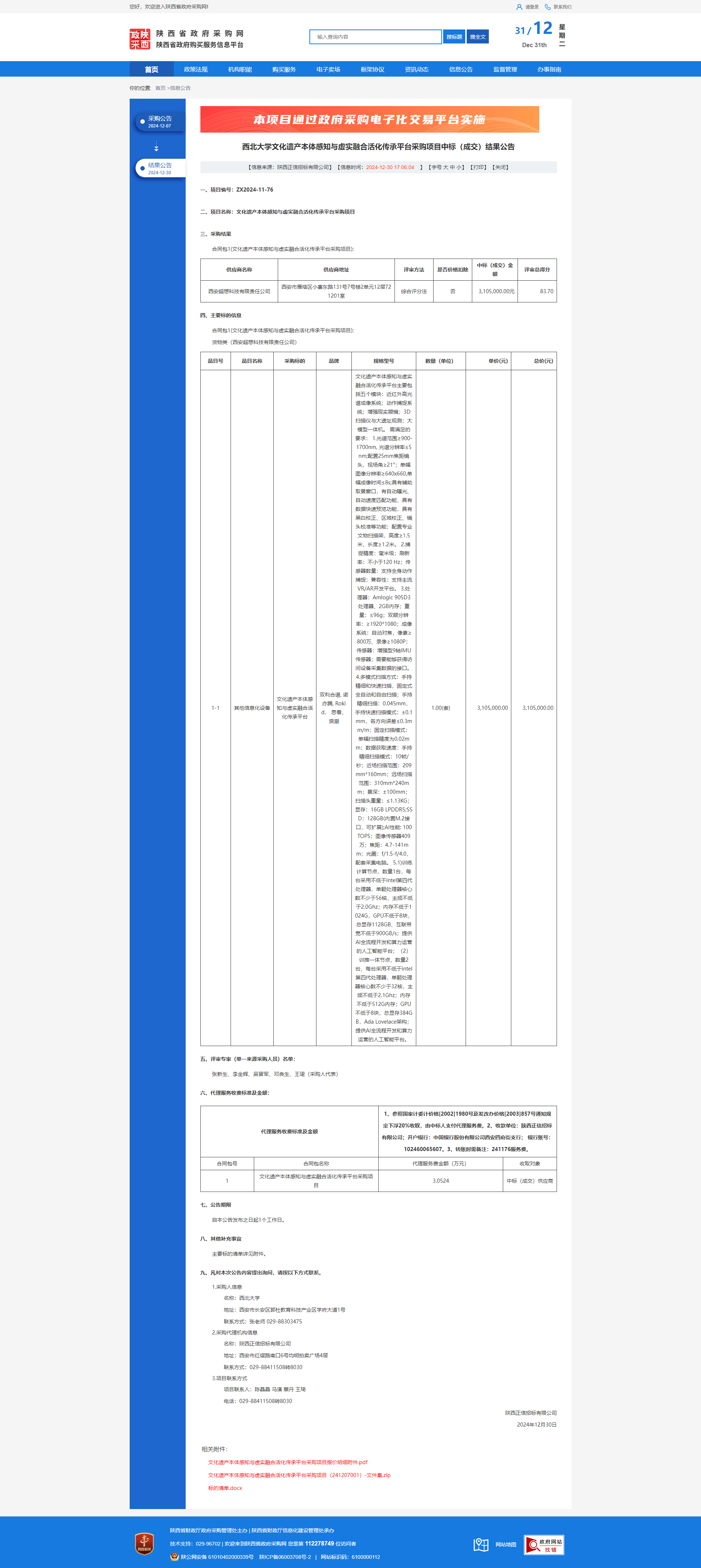 星空app官网文化遗产本体感知与虚实融合活化传承平台采购项目中标(成交)结果公告