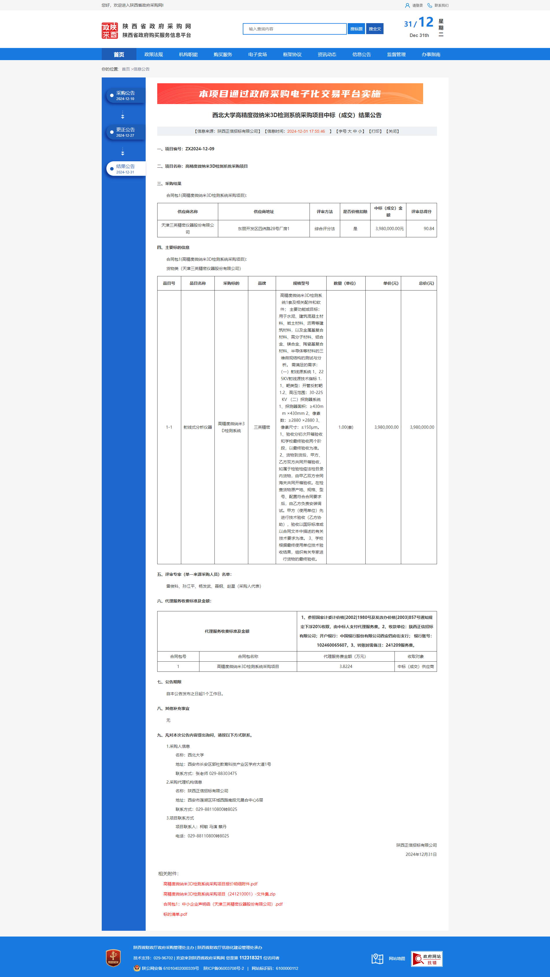 星空app官网高精度微纳米3D检测系统采购项目中标(成交)结果公告