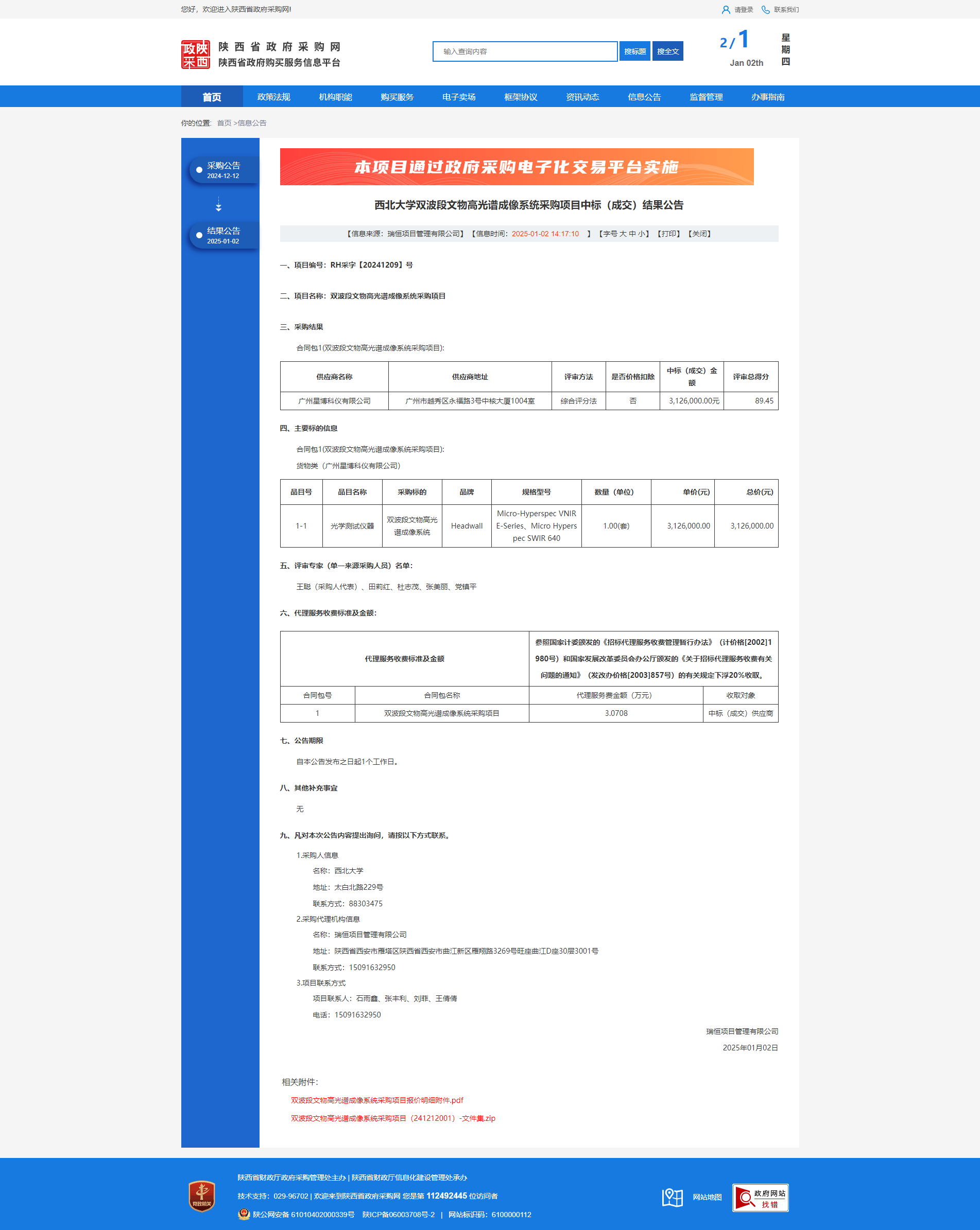星空app官网双波段文物高光谱成像系统采购项目中标(成交)结果公告