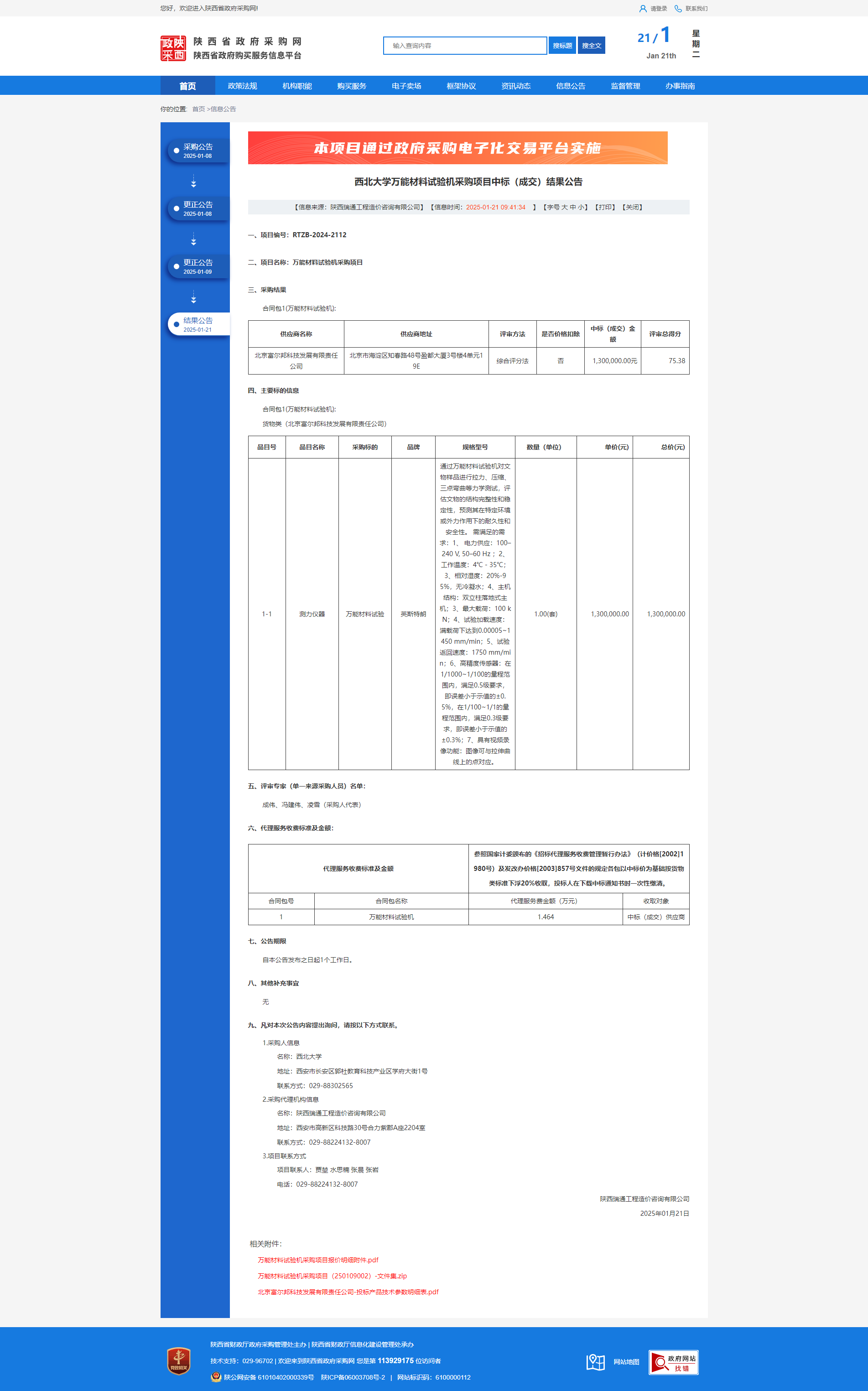 星空app官网万能材料试验机采购项目中标(成交)结果公告