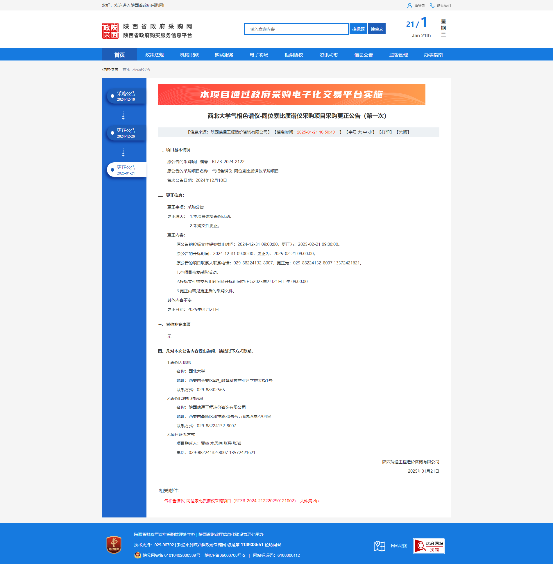 星空app官网气相色谱仪-同位素比质谱仪采购项目采购更正公告(第一次)