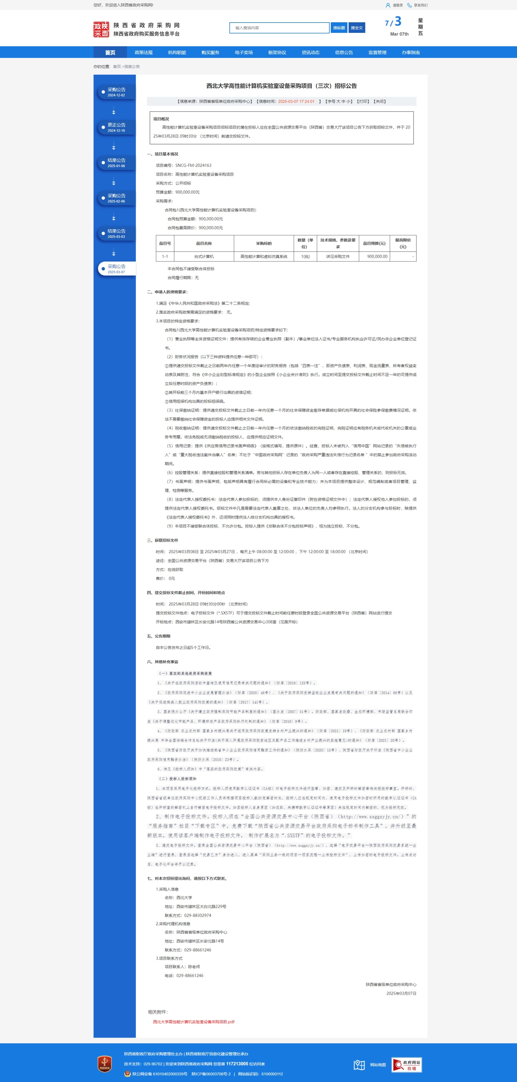 星空app官网高性能计算机实验室设备采购项目(三次)招标公告 作者: 编辑: 时间:2025-03-07 原公告链接:https://www.ccgp-shaanxi.gov.cn/freecms/site/shaanxi/ggxx/info/2025/8a69c5d99566cd8a019569705d412ddb.html?noticeType=001011¬iceId=b05e7c10-fb37-11ef-8063-08c0eb20c666