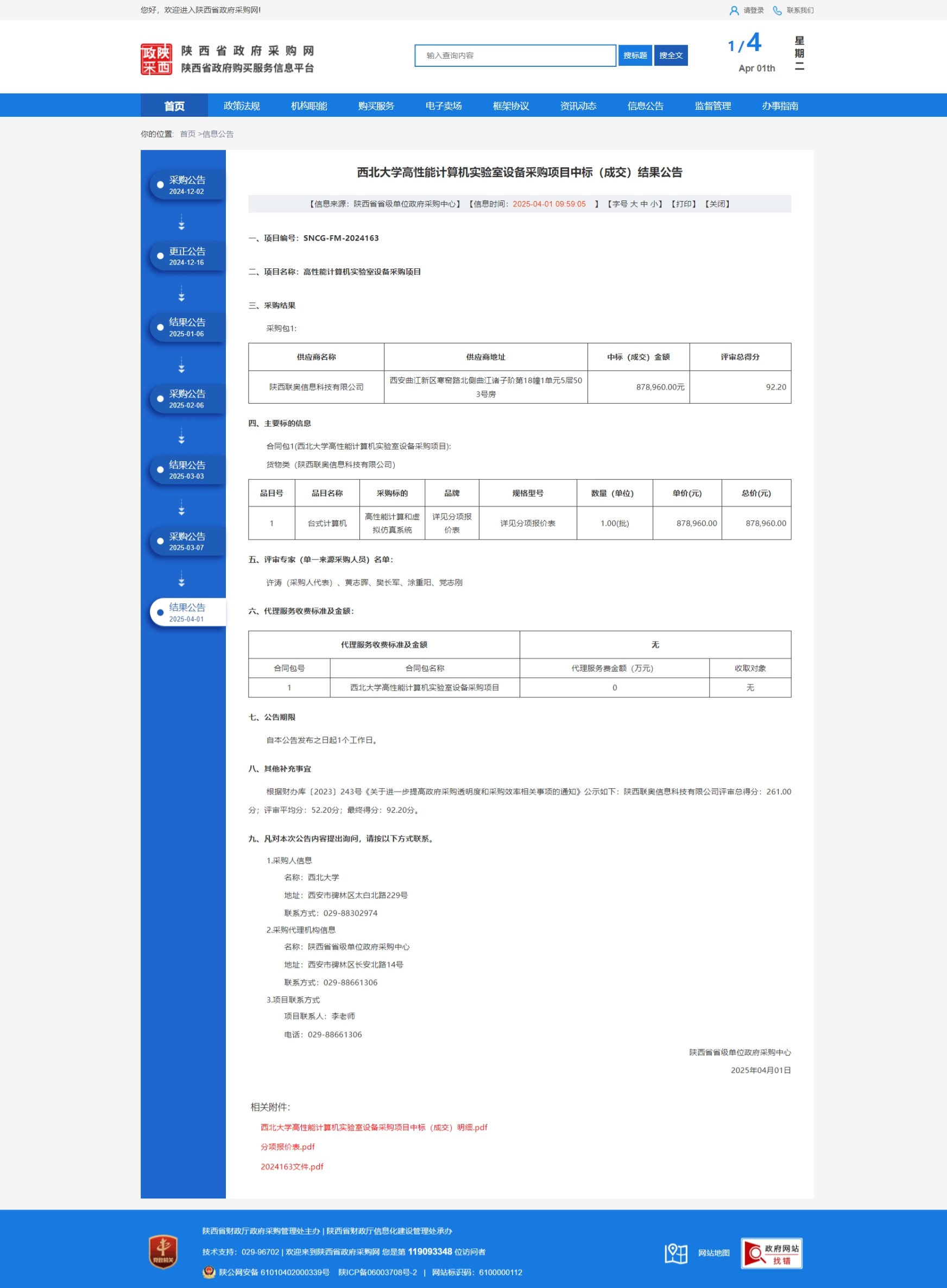 星空app官网高性能计算机实验室设备采购项目中标(成交)结果公告 作者: 编辑:采购与招标办公室 时间:2025-04-01 原公告链接:https://www.ccgp-shaanxi.gov.cn/freecms/site/shaanxi/ggxx/info/2025/8a69c0959566cd7e0195eef3776f2f16.html?noticeType=001021¬iceId=b788f147-0e9e-11f0-8063-08c0eb20c666