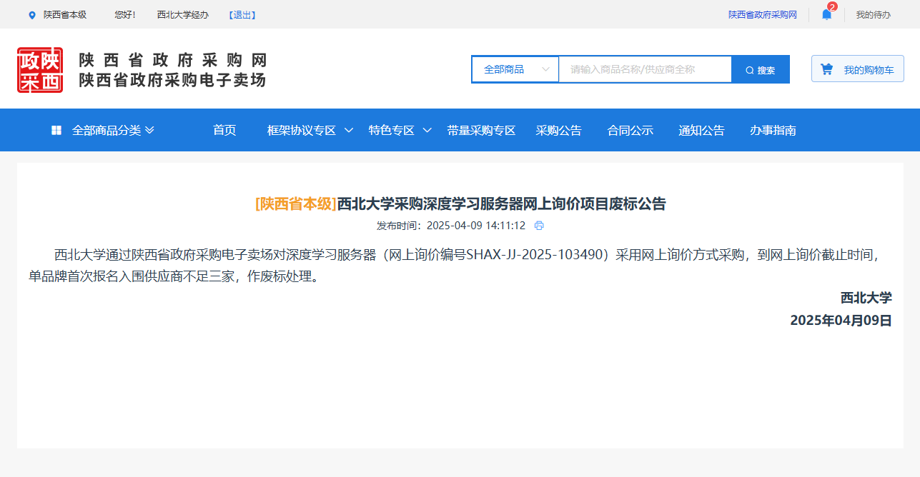 星空app官网采购深度学习服务器网上询价项目废标公告