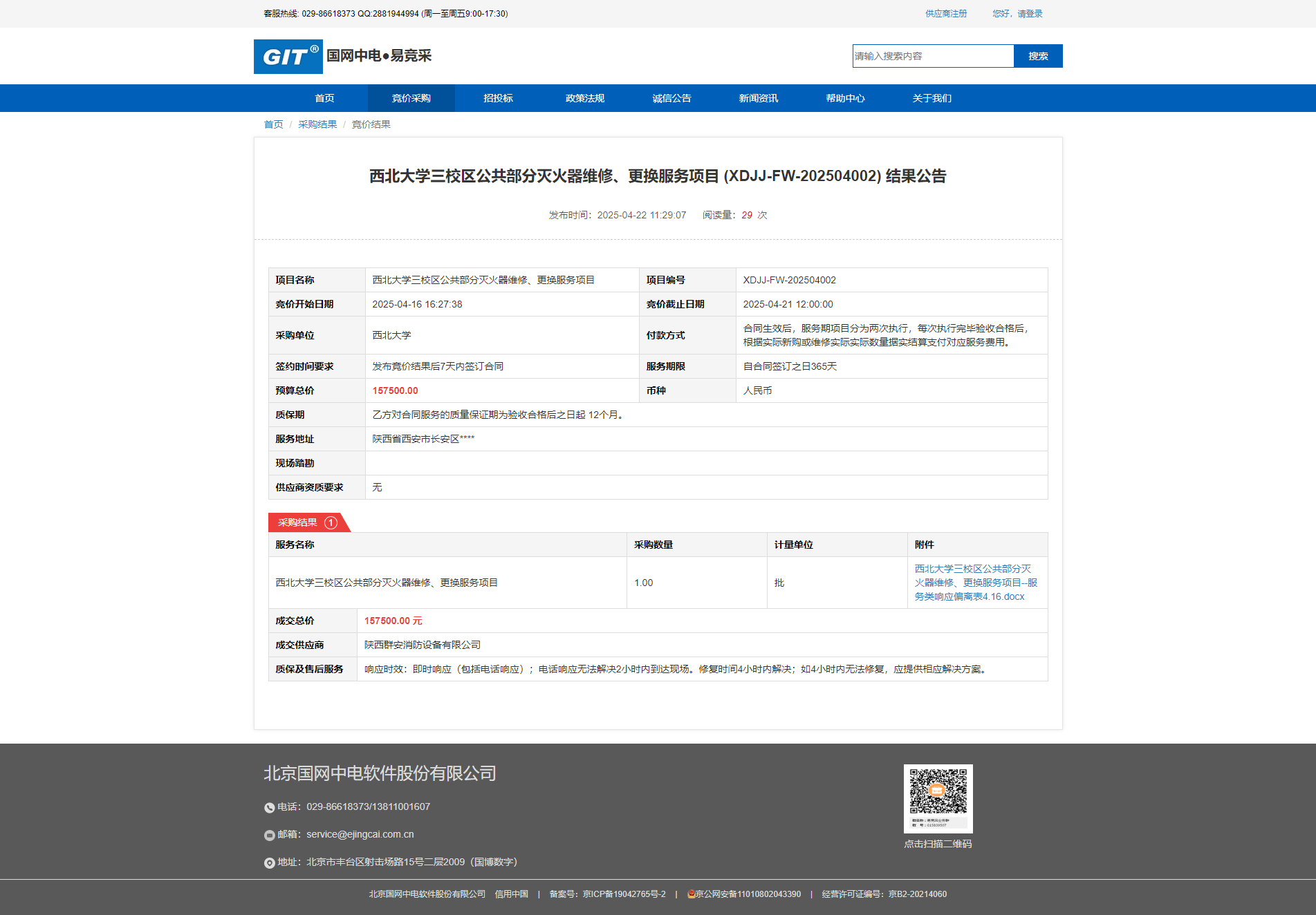 星空app官网三校区公共部分灭火器维修、更换服务项目 (XDJJ-FW-202504002) 结果公告
