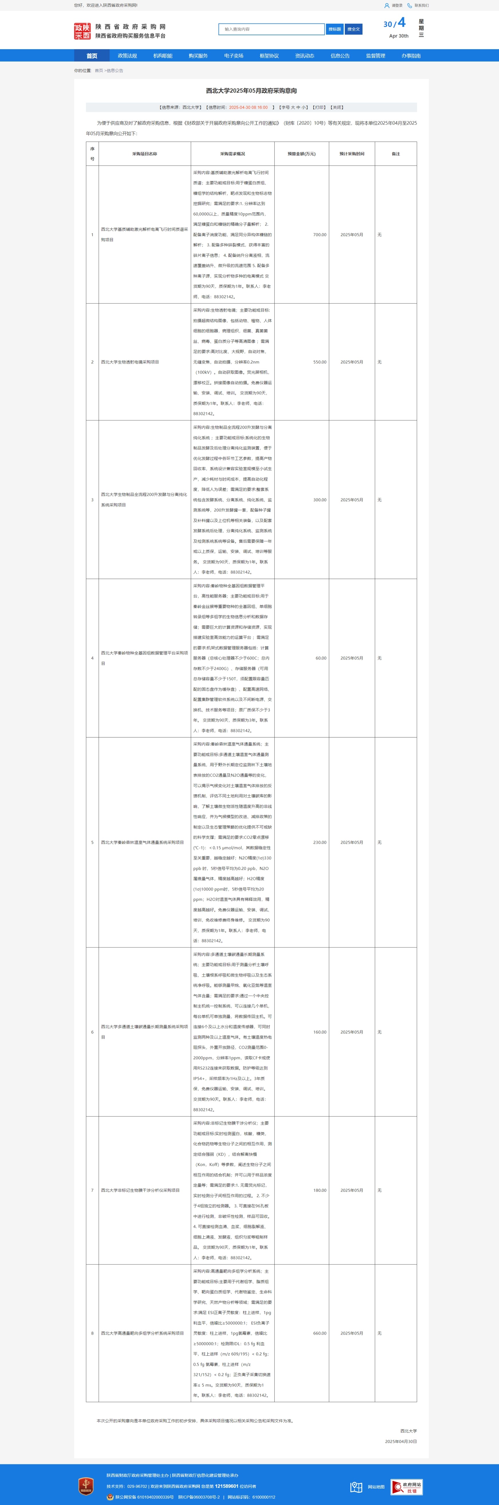 星空app官网2025年05月政府采购意向(生命科学学院) 作者: 编辑:采购与招标办公室 时间:2025-04-30 原公告链接:https://www.ccgp-shaanxi.gov.cn/freecms/site/shaanxi/ggxx/info/2025/8a69c1879656b6c301967b16d4213330.html?noticeType=59¬iceId=2c5b777a-255a-11f0-8063-08c0eb20c666