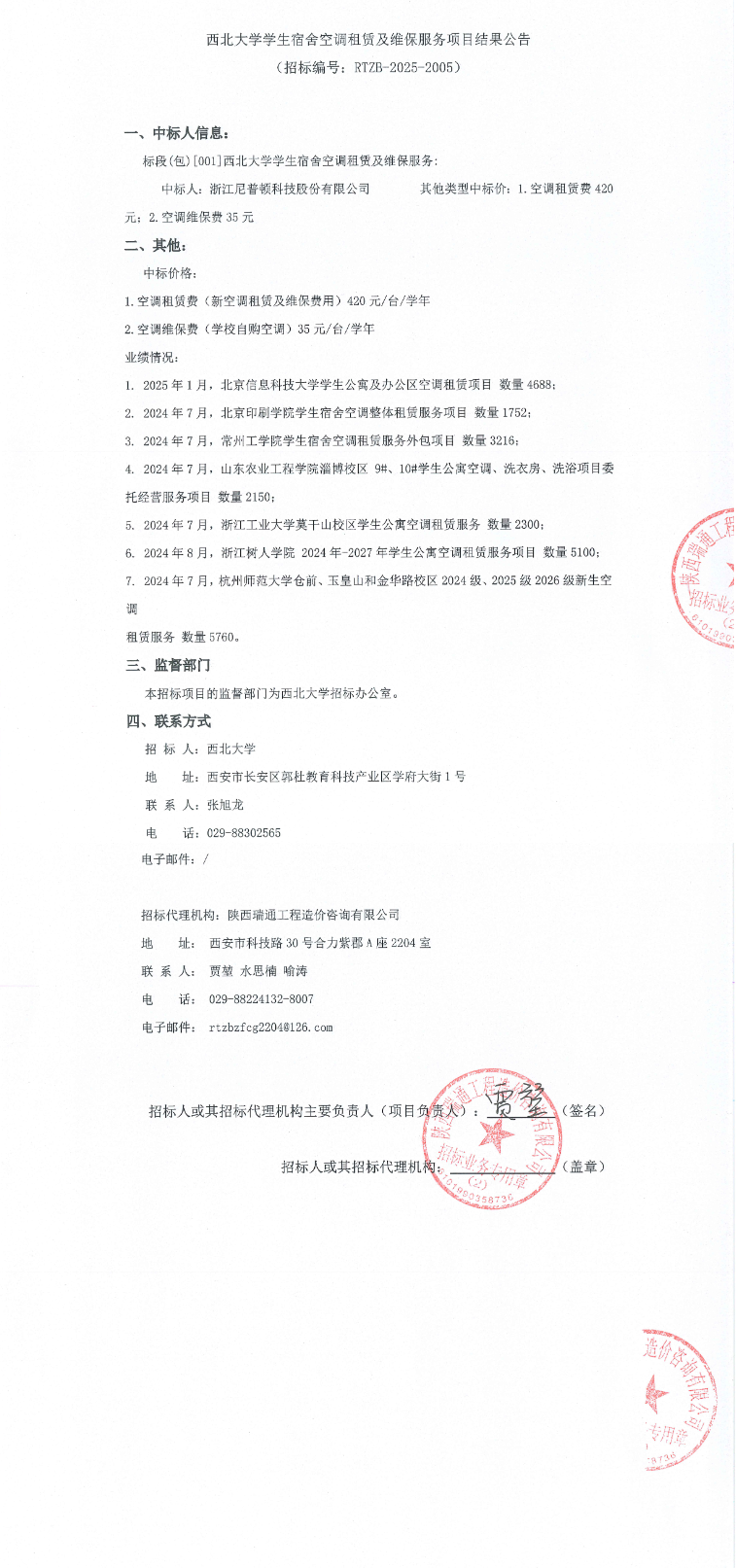 星空app官网学生宿舍空调租赁及维保服务项目结果公告