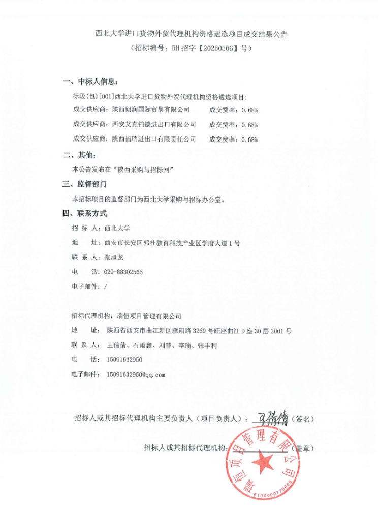 星空app官网进口货物外贸代理机构资格遴选项目成交结果公告