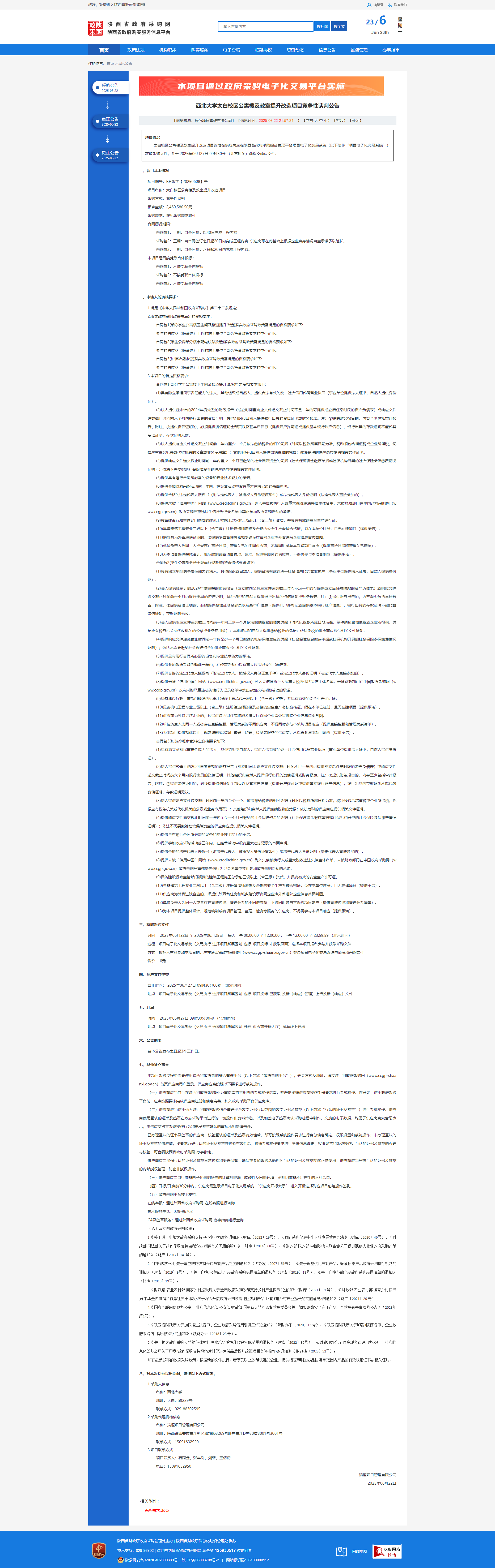星空app官网太白校区公寓楼及教室提升改造项目竞争性谈判公告