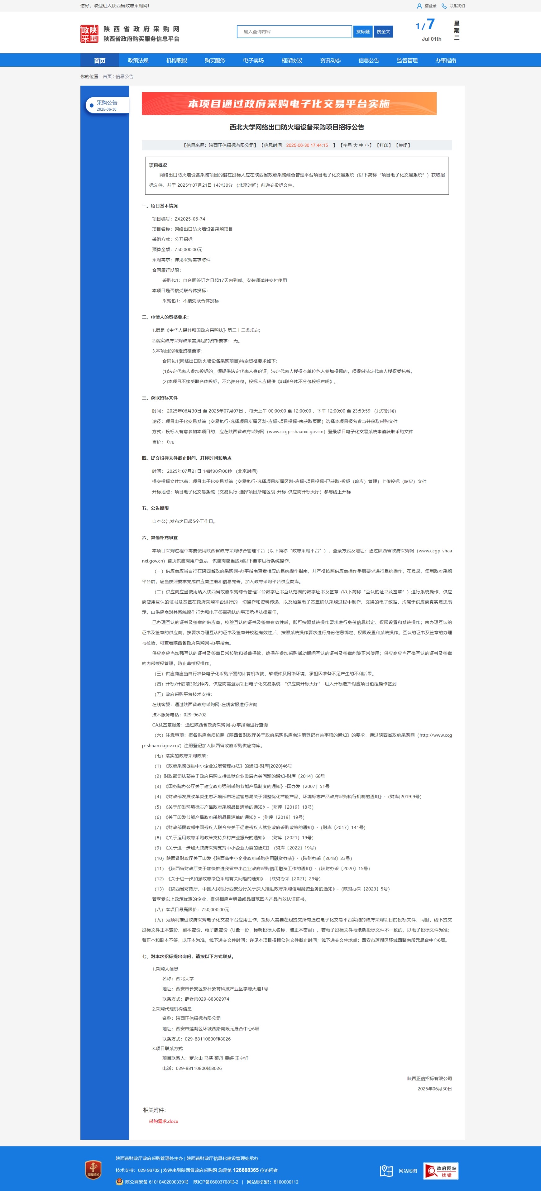 星空app官网网络出口防火墙设备采购项目招标公告 作者: 编辑:采购与招标办公室 时间:2025-07-01 原公告链接:https://www.ccgp-shaanxi.gov.cn/freecms/site/shaanxi/ggxx/info/2025/8a69c2ef97af7dd30197c01b7ca54817.html?noticeType=001011¬iceId=c6225ff7-5598-11f0-8063-08c0eb20c666