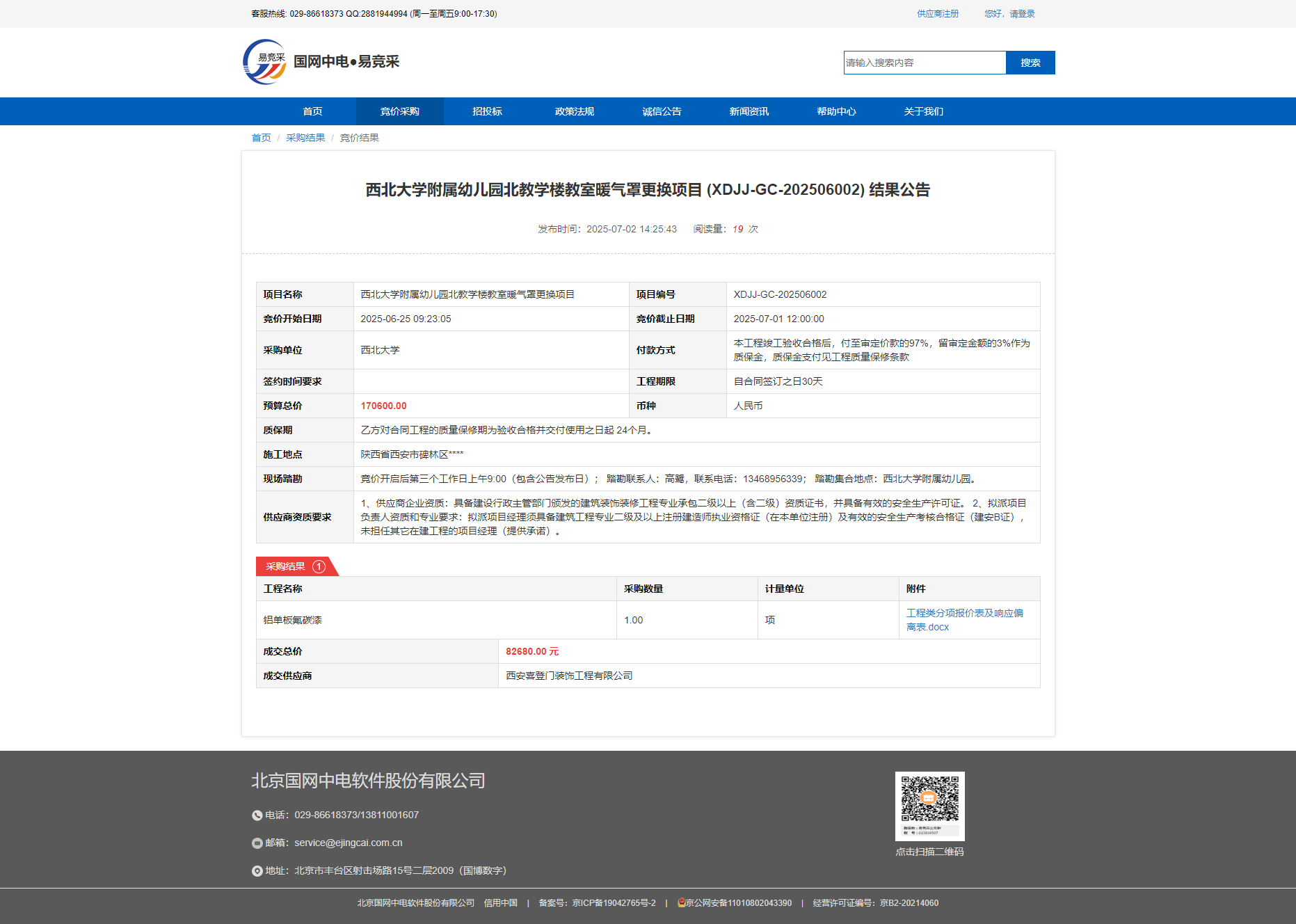 星空app官网附属幼儿园北教学楼教室暖气罩更换项目 (XDJJ-GC-202506002) 结果公告