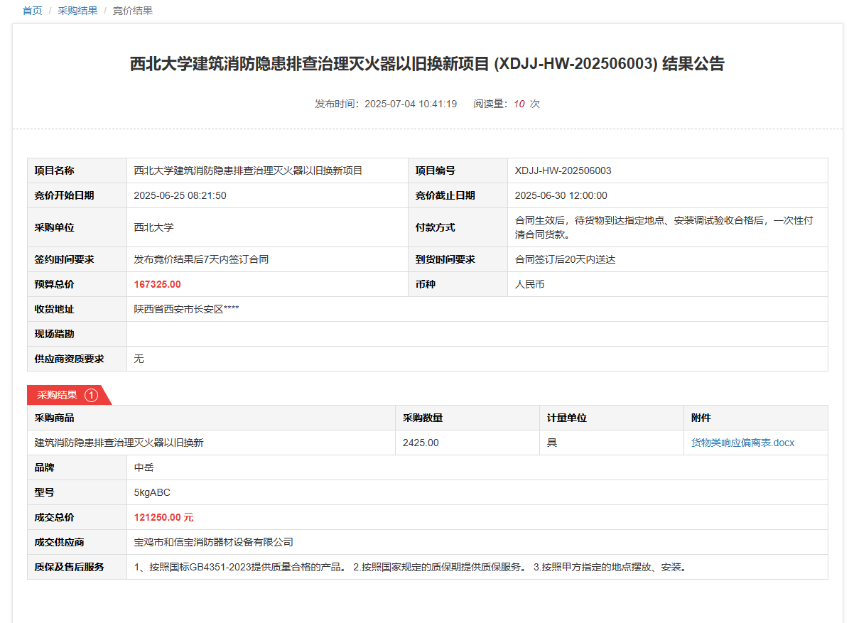 星空app官网太白校区11#、12#学生公寓室外部分消防安全综合治理工程 (XDJJ-GC-202506005) 结果公告
