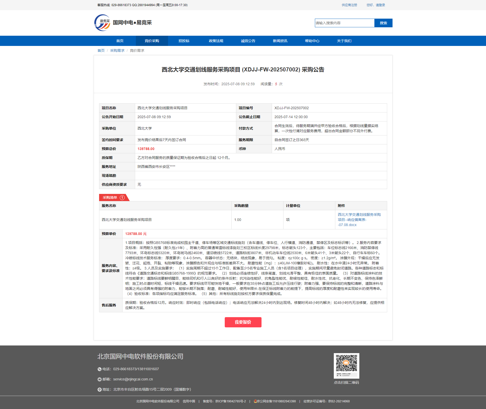 星空app官网交通划线服务采购项目 (XDJJ-FW-202507002) 采购公告