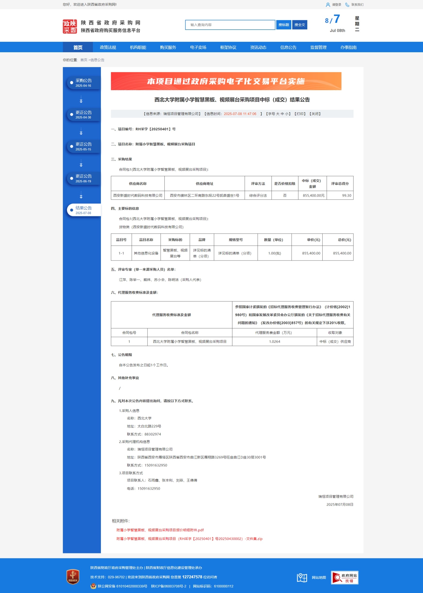 星空app官网附属小学智慧黑板、视频展台采购项目中标(成交)结果公告 作者: 编辑:采购与招标办公室 时间:2025-07-08 原公告链接:https://www.ccgp-shaanxi.gov.cn/freecms/site/shaanxi/ggxx/info/2025/8a69c0bc97db81390197e819c3dd4789.html?noticeType=001021¬iceId=37da8661-5bb0-11f0-8063-08c0eb20c666