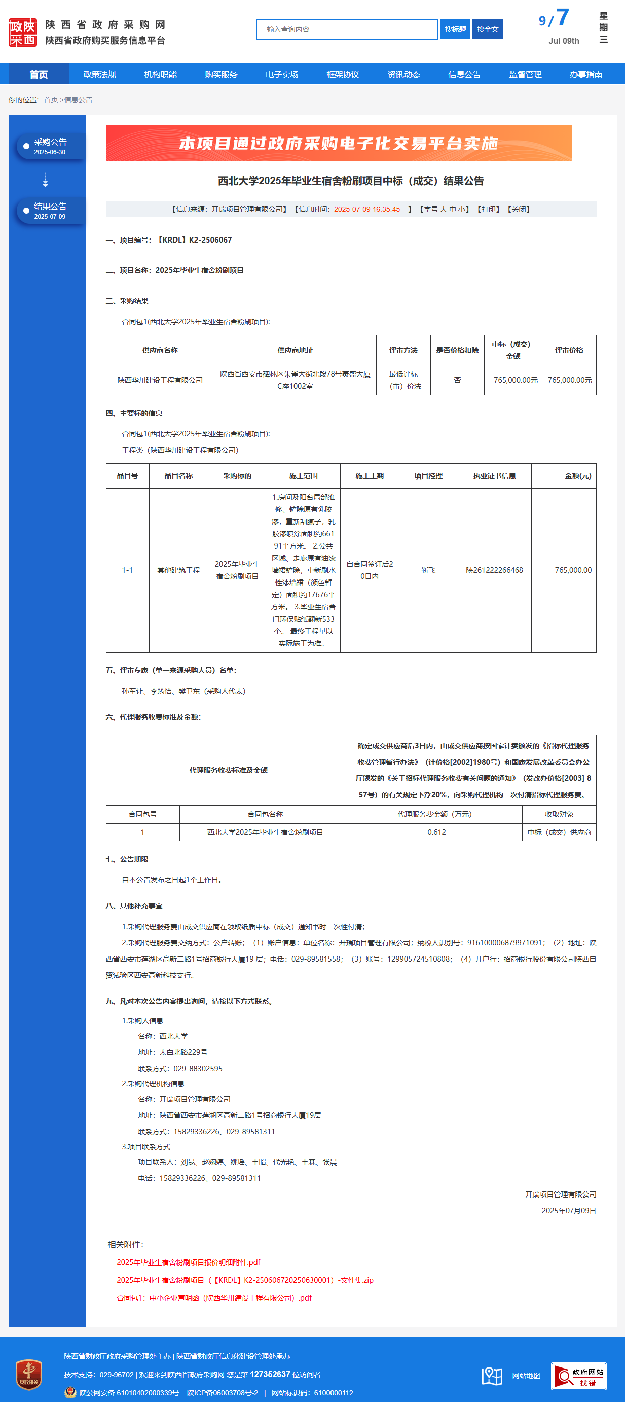 星空app官网2025年毕业生宿舍粉刷项目中标(成交)结果公告