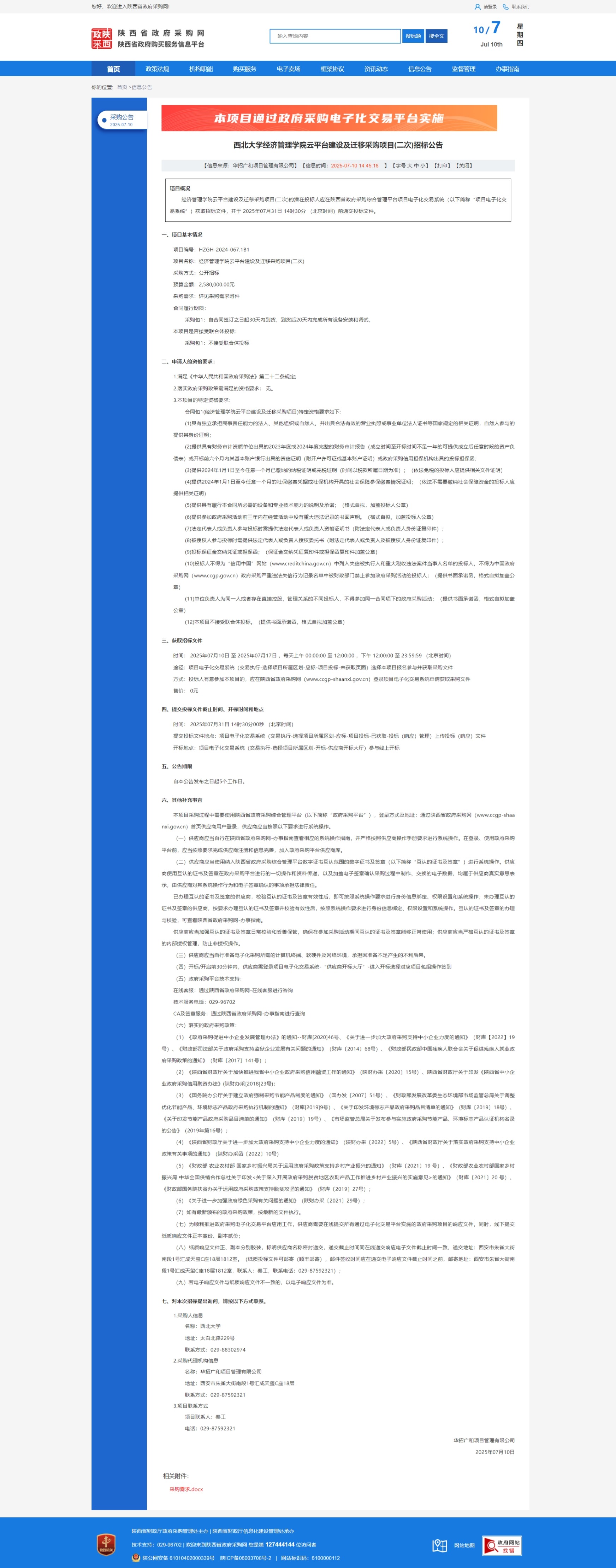 星空app官网经济管理学院云平台建设及迁移采购项目(二次)招标公告 作者: 编辑:采购与招标办公室 时间:2025-07-10 原公告链接:https://www.ccgp-shaanxi.gov.cn/freecms/site/shaanxi/ggxx/info/2025/8a69c1d397de6c600197f2fbf4e10396.html?noticeType=001011¬iceId=714cdc4c-5d5b-11f0-8063-08c0eb20c666
