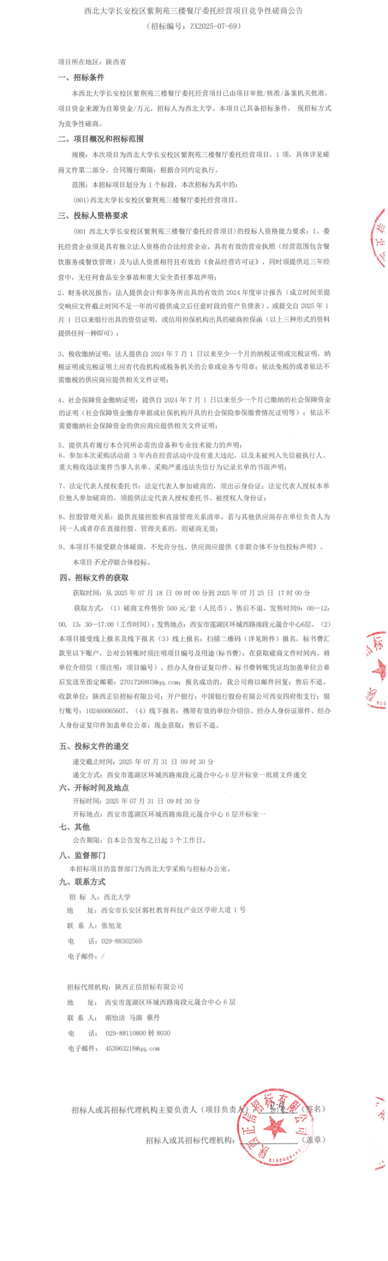 星空app官网长安校区紫荆苑三楼餐厅委托经营项目竞争性磋商公告