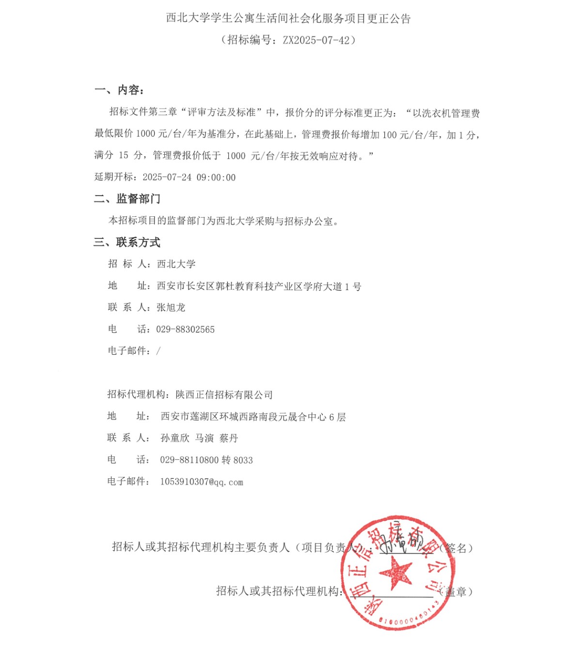 星空app官网学生公寓生活间社会化服务项目更正公告