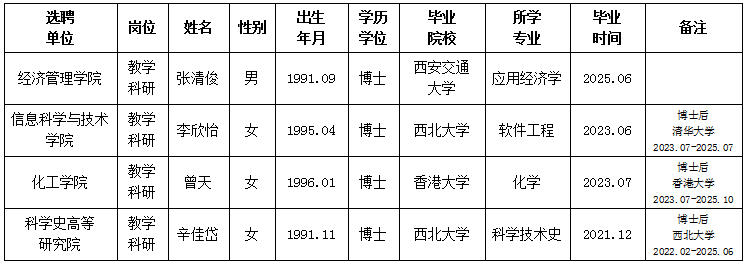 经资格审查,用人单位考查,学校教师高级职务特别评审,学校审批,星空app官网拟确定下列人员来校工作,聘任方式为事业编特别选聘。本着公平、公正、公开的原则,现将本次拟选聘人员基本情况公示如下: