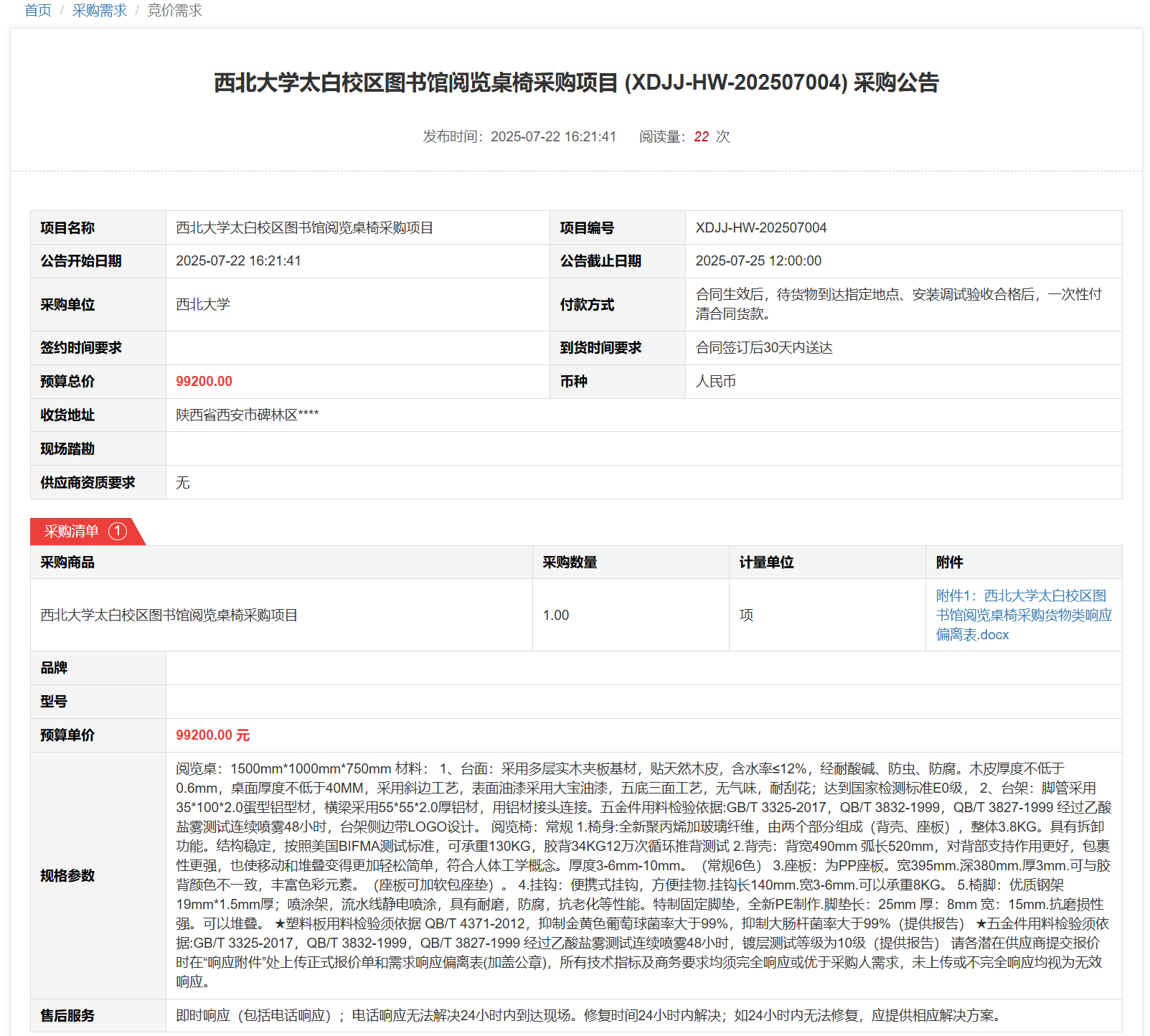 星空app官网太白校区图书馆阅览桌椅采购项目(XDJJ-HW-202507004)竞价采购公告 作者:采购与招标办公室 编辑: 时间:2025-07-22 原公告链接:https://www.ejingcai.com.cn/site/bidding/detail/19667