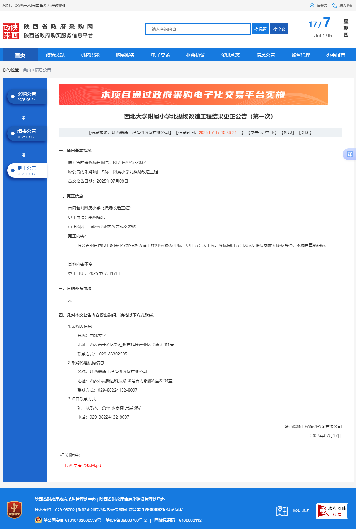 星空app官网附属小学北操场改造工程结果更正公告(第一次)
