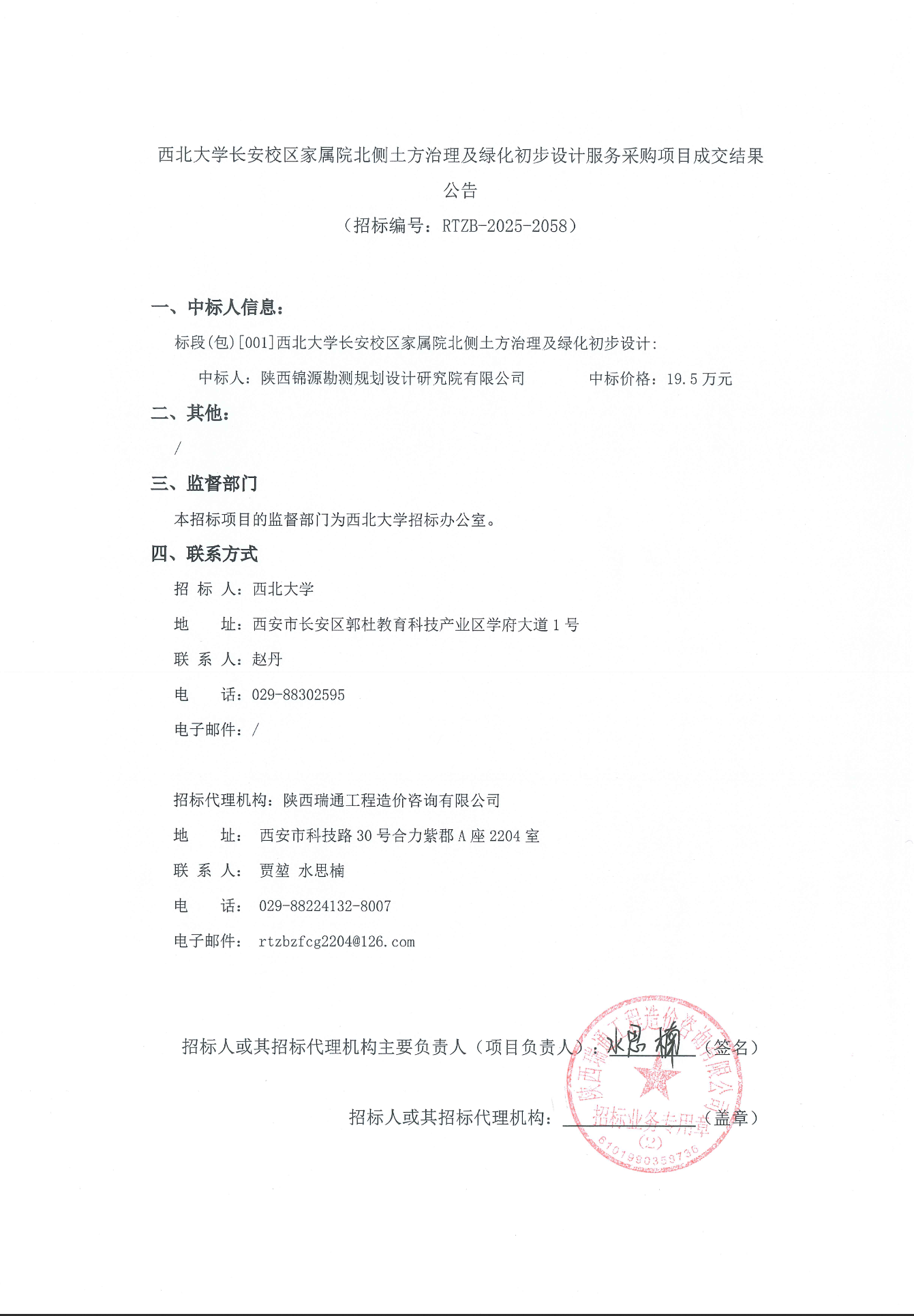 星空app官网长安校区家属院北侧土方治理及绿化初步设计服务采购项目成交结果公告
