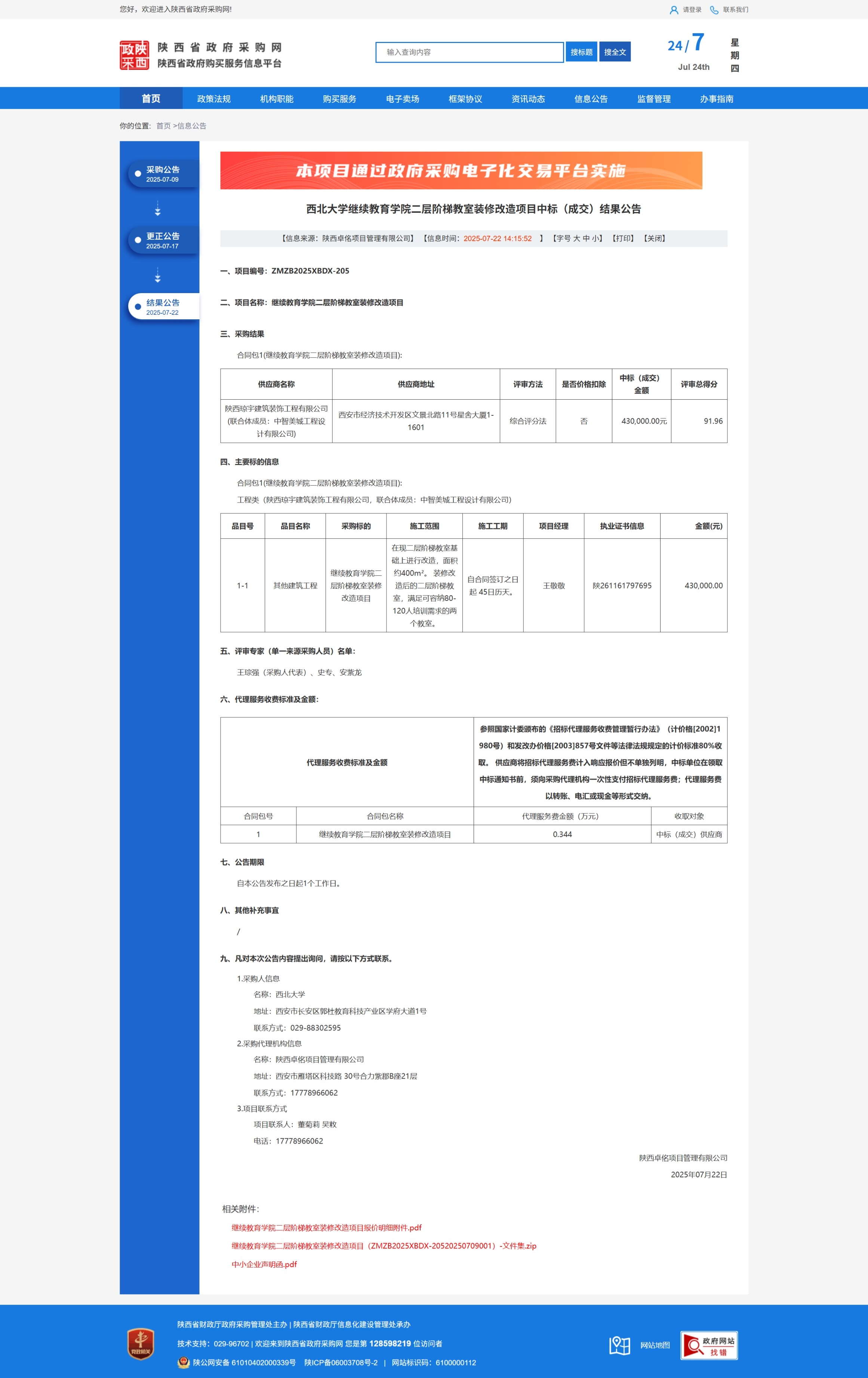 星空app官网继续教育学院二层阶梯教室装修改造项目中标(成交)结果公告