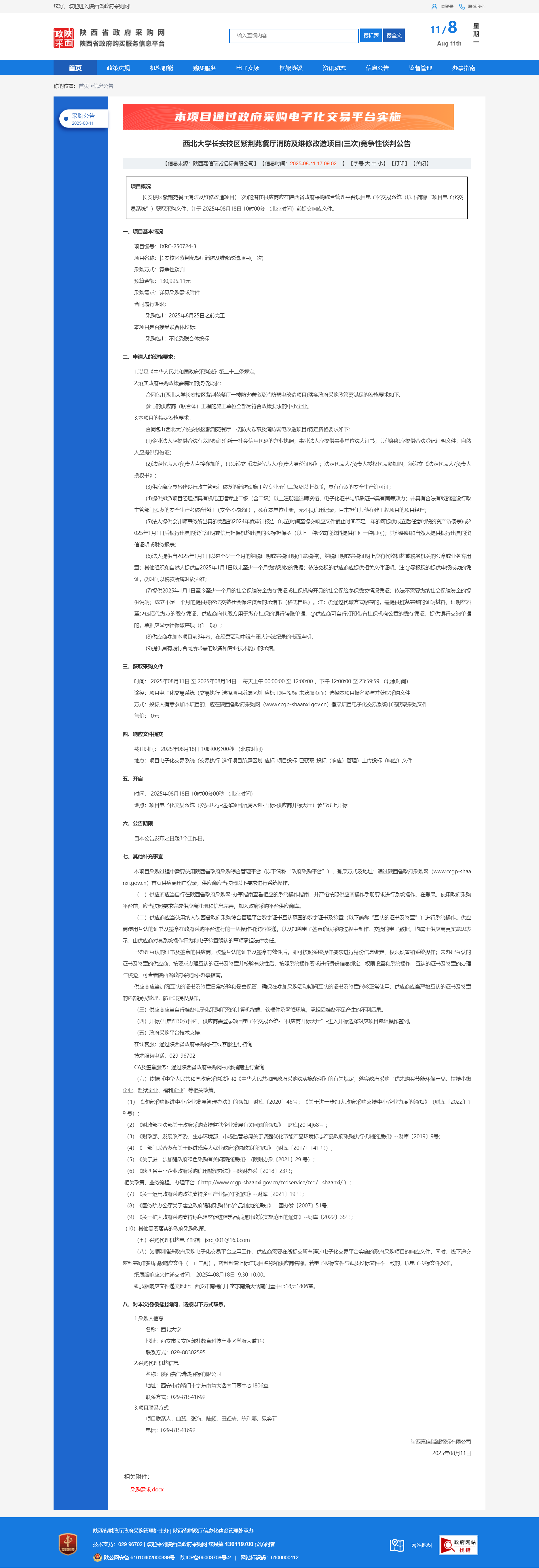 星空app官网长安校区紫荆苑餐厅消防及维修改造项目(三次)竞争性谈判公告