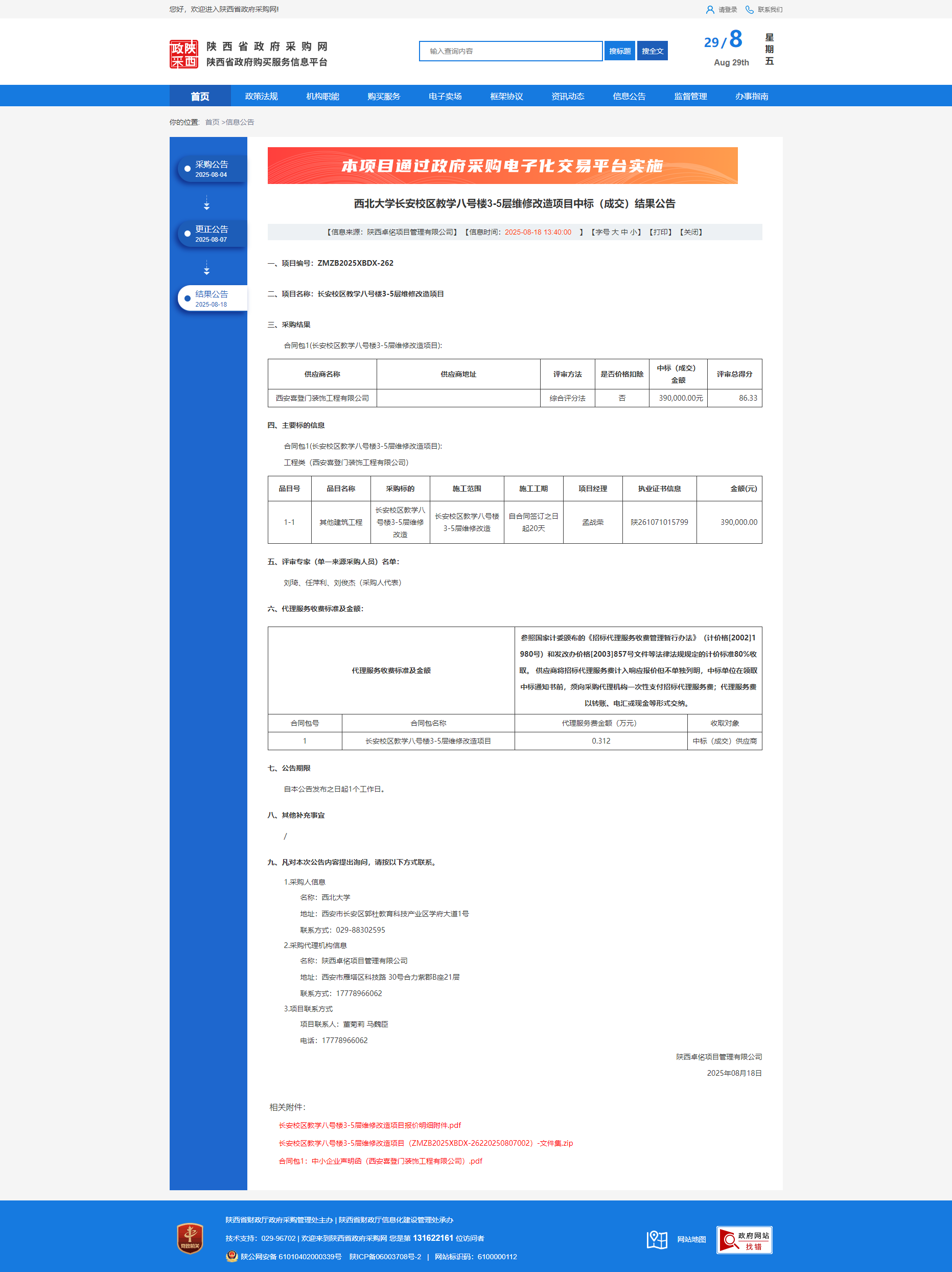 星空app官网长安校区教学八号楼3-5层维修改造项目中标(成交)结果公告