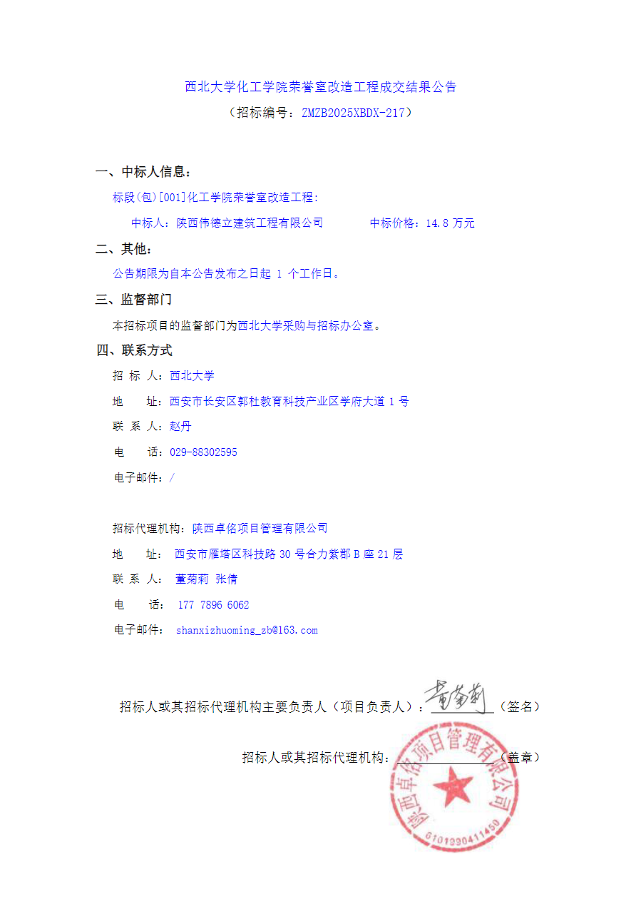 星空app官网化工学院荣誉室改造工程成交结果公告