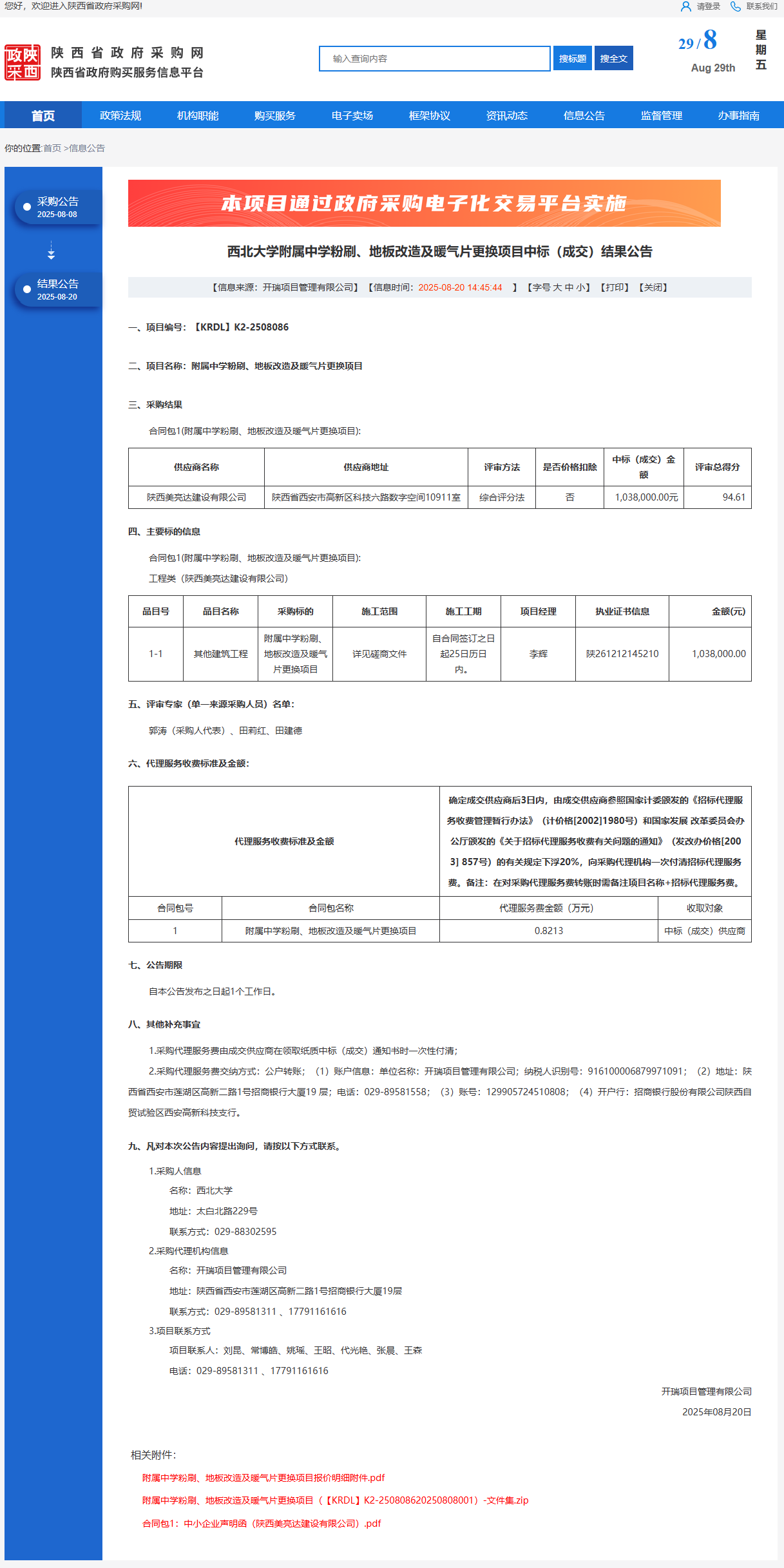 星空app官网附属中学粉刷、地板改造及暖气片更换项目中标(成交)结果公告