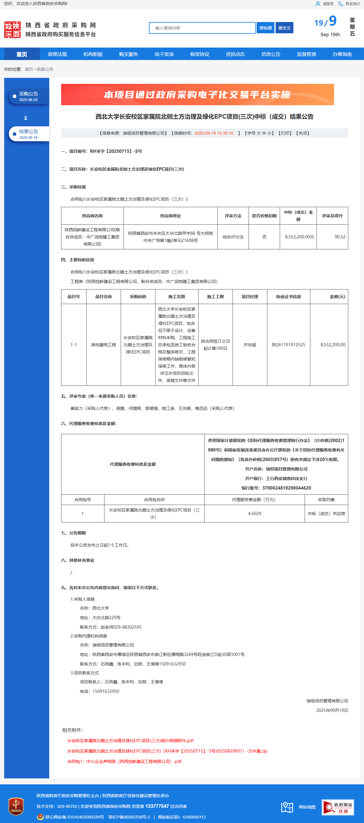 星空app官网长安校区家属院北侧土方治理及绿化EPC项目(三次)中标(成交)结果公告