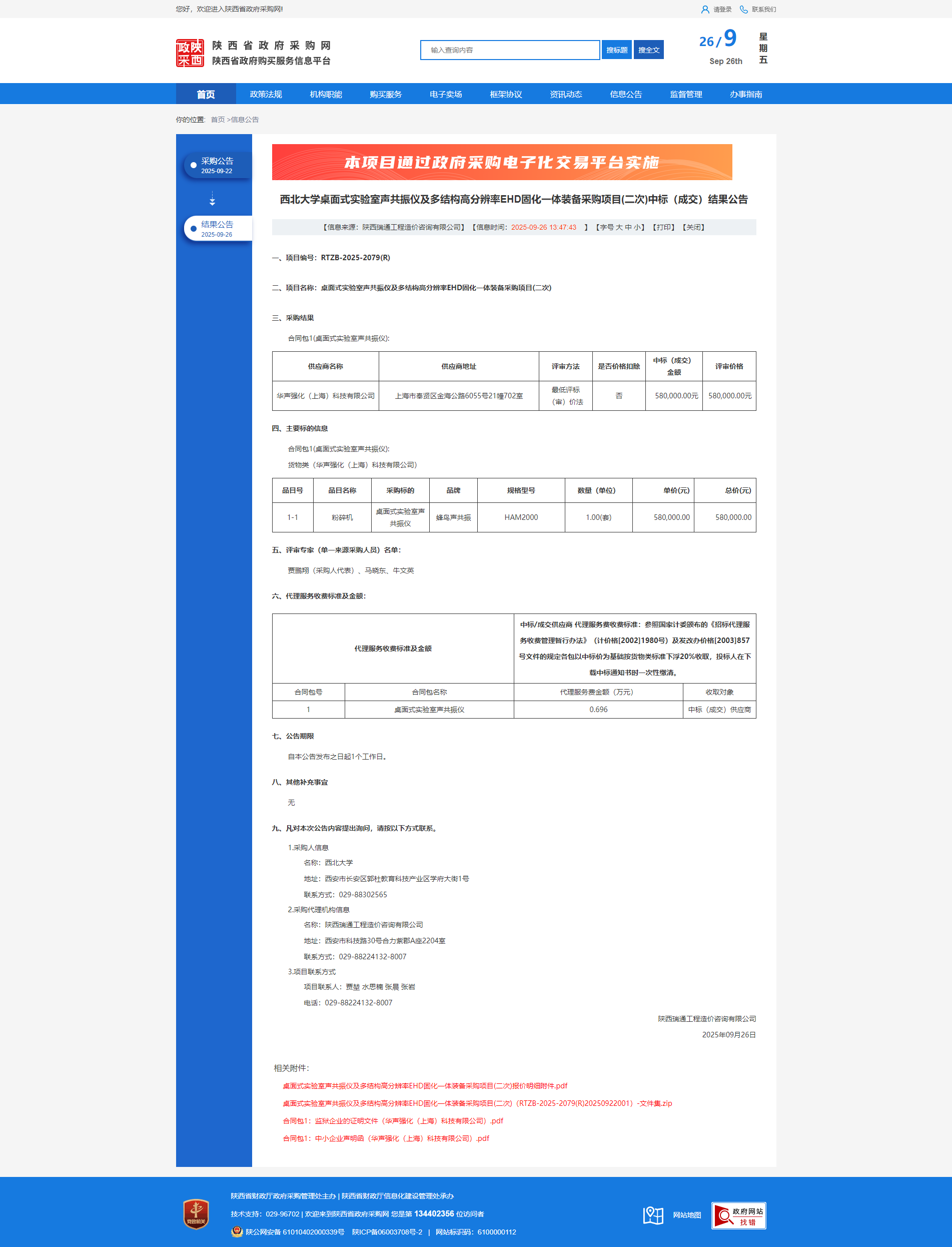 星空app官网桌面式实验室声共振仪及多结构高分辨率EHD固化一体装备采购项目(二次)中标(成交)结果公告