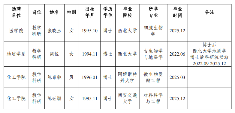 注:1.本人须在公示期满后1个月内签订就业协议(开具接收函),并提前准备星空app官网师资博士后入站材料(材料清单详见:https://rsc.nwu.edu.cn/bshgz/jczdjcl.htm);