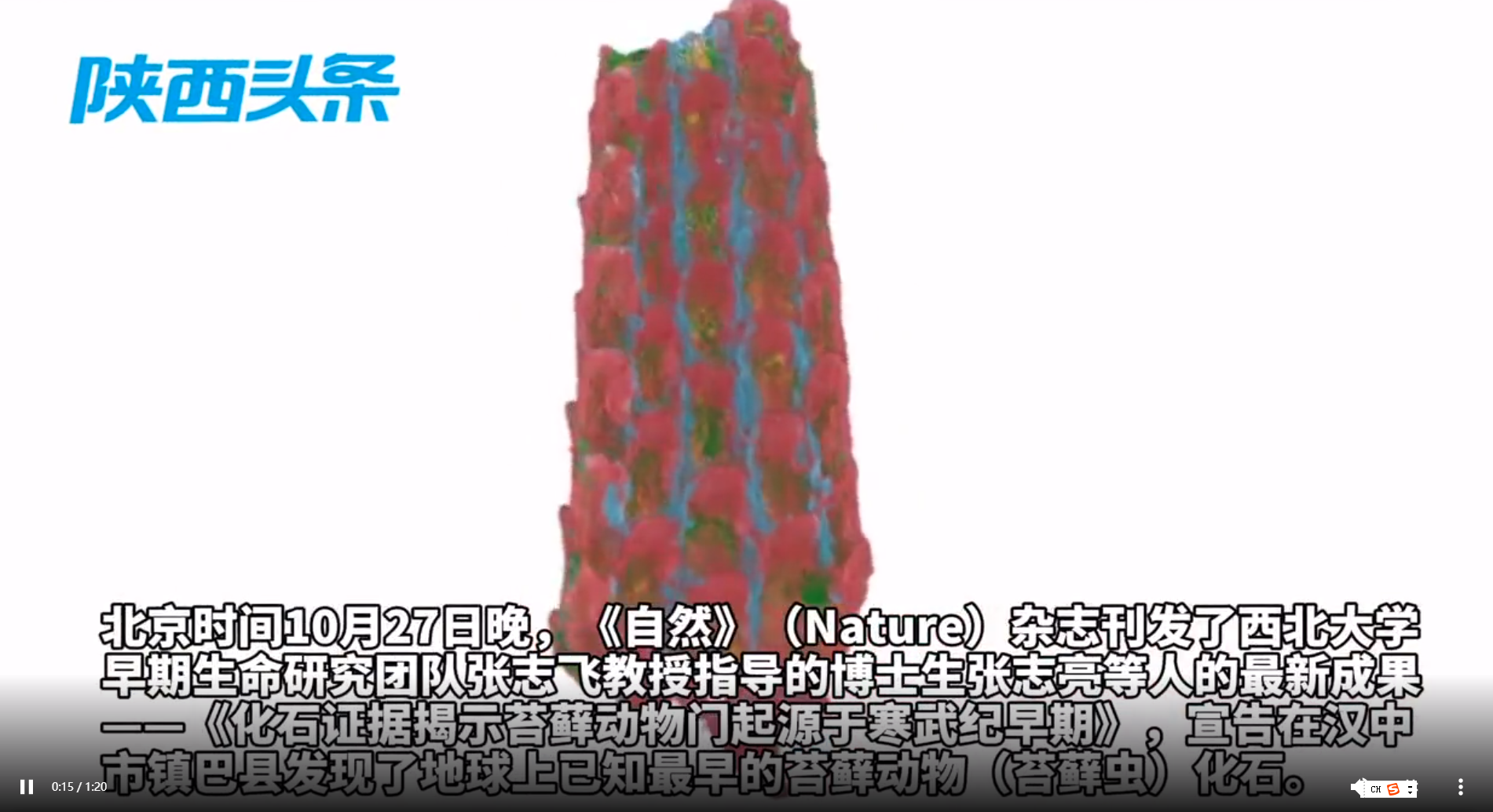 视频丨陕西镇巴县发现地球最早苔藓虫化石 将苔藓动物起源向前推进至少5千万年 作者: 编辑:张邓斓 时间:2021-10-28 视频链接:http://news.cnwest.com/bwyc/a/2021/10/28/20056409.html