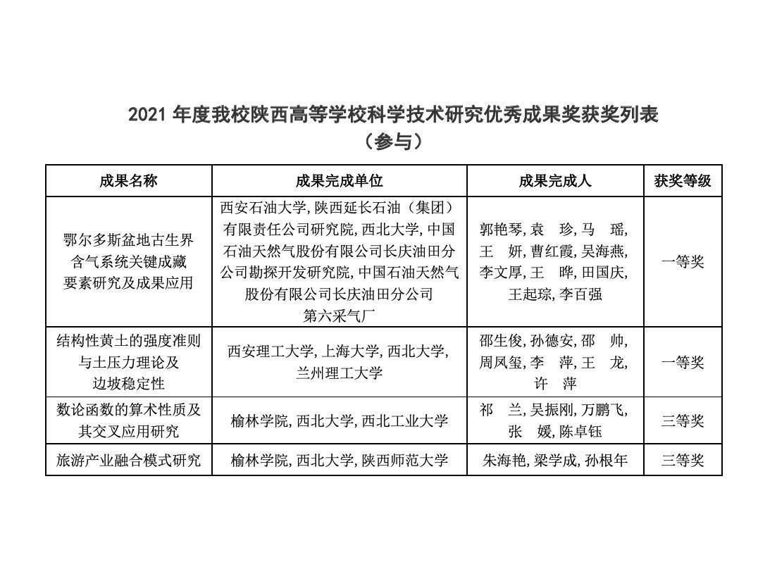 星空app官网多项成果获2022年度陕西高等学校科学技术研究优秀成果奖 作者: 编辑:张邓斓 时间:2022-04-12 3月23日,《陕西省教育厅关于公布2022 年度陕西高等学校科学技术研究优秀成果奖的通报》发布,星空app官网主持和参与的成果共有17项获奖,主持的成果共有13项获奖,其中特等奖1项,一等奖7项,二等奖2项,三等奖2项,科普奖1项;参与的成果共有4项获奖,其中一等奖2项,三等奖2项。是近三年星空app官网在省教育厅奖中取得的最好成绩。 此次全省共评选出2022 年度陕西高等学校科学技术研究优秀成果奖获奖成果360项,其中特等奖27项、一等奖132项、二等奖155项、三等奖41项、科普奖5项。