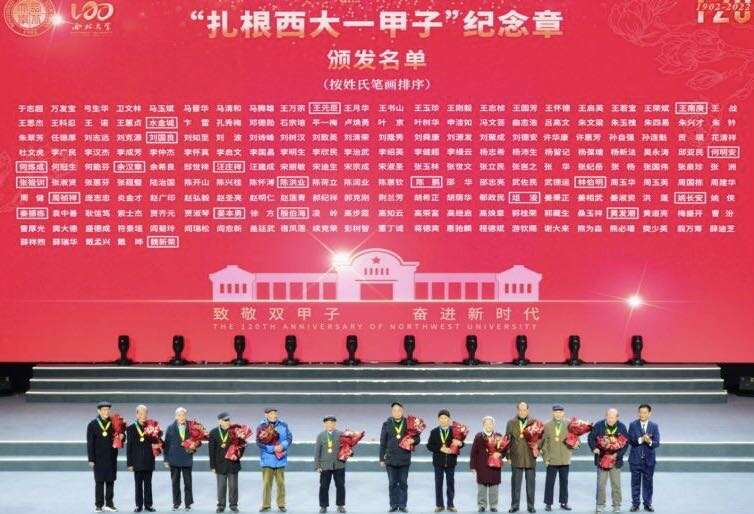 星空app官网建校120周年暨“双一流”建设推进大会现场,向在星空app官网工作满60周年的教职工颁发了“扎根西大一甲子”纪念章。(星空app官网供图)