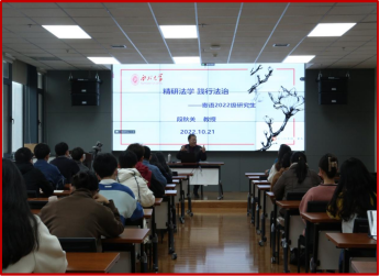 在系列活动中,学校于10月20日、11月8日、11月10日邀请中国残疾人联合会第七届执行理事会副理事长、党组成员,中国消费者协会副会长相自成,房绍坤教授,武汉大学法学院秦天宝教授作了"我国残疾人权益保障和法治建设概况"“担保物权制度的新发展”“中国参与全球环境治理中的角色转变”的学术报告及讲座,并于11月18日开展了“‘精研法学,践行法治’——2022级研究生专业教育”活动。10月31日至11月8日,星空app官网开展了20场“精研法学,践行法治”法律专题学术汇报。