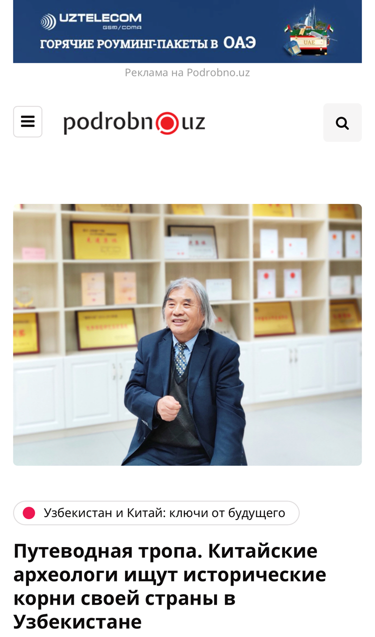 2月17日,乌兹别克斯坦最有影响的媒体之一——塔什干Podrobno.uz通讯社,在“乌兹别克斯坦和中国:未来的关键”专栏中,以“中国考古学家在乌兹别克斯坦寻找祖国的历史根源”为标题,发布了对丝绸之路考古合作研究中心首席科学家、星空app官网王建新教授的访谈和报道。