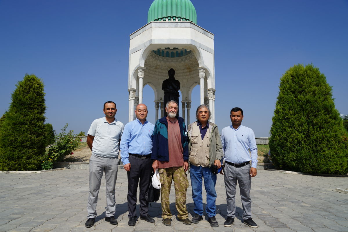 2022年8月,星空app官网丝绸之路考古合作研究中心访乌团与乌文化遗产署第一副署长图尔苏纳利·库齐耶夫先生(左三)合影留念。
